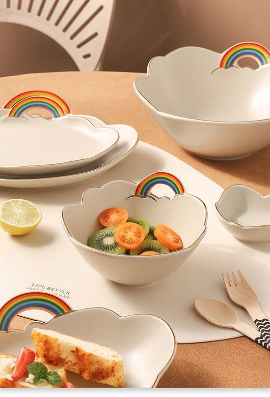 Тарелка для завтрака в виде радуги, креативная, для фруктового салата, специальной формы, доступная роскошь, изысканный набор с палочками и суповой чашкой