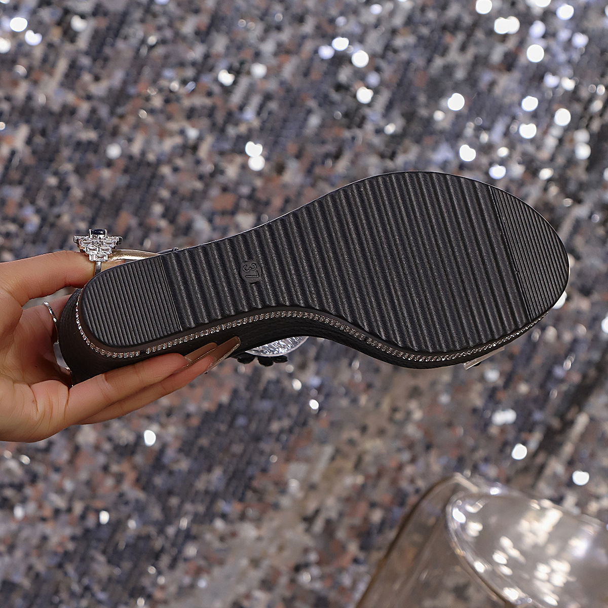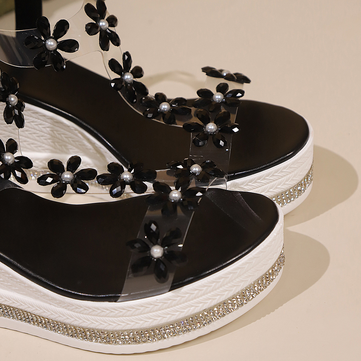 Кросс-Бордерные Большие Размеры Цветочные Сандалии для Женщин 2025 Летний Новый Стиль Европейские и Американские Эластичные Ремешки Ринestones Платформенные Толстые Подошвы