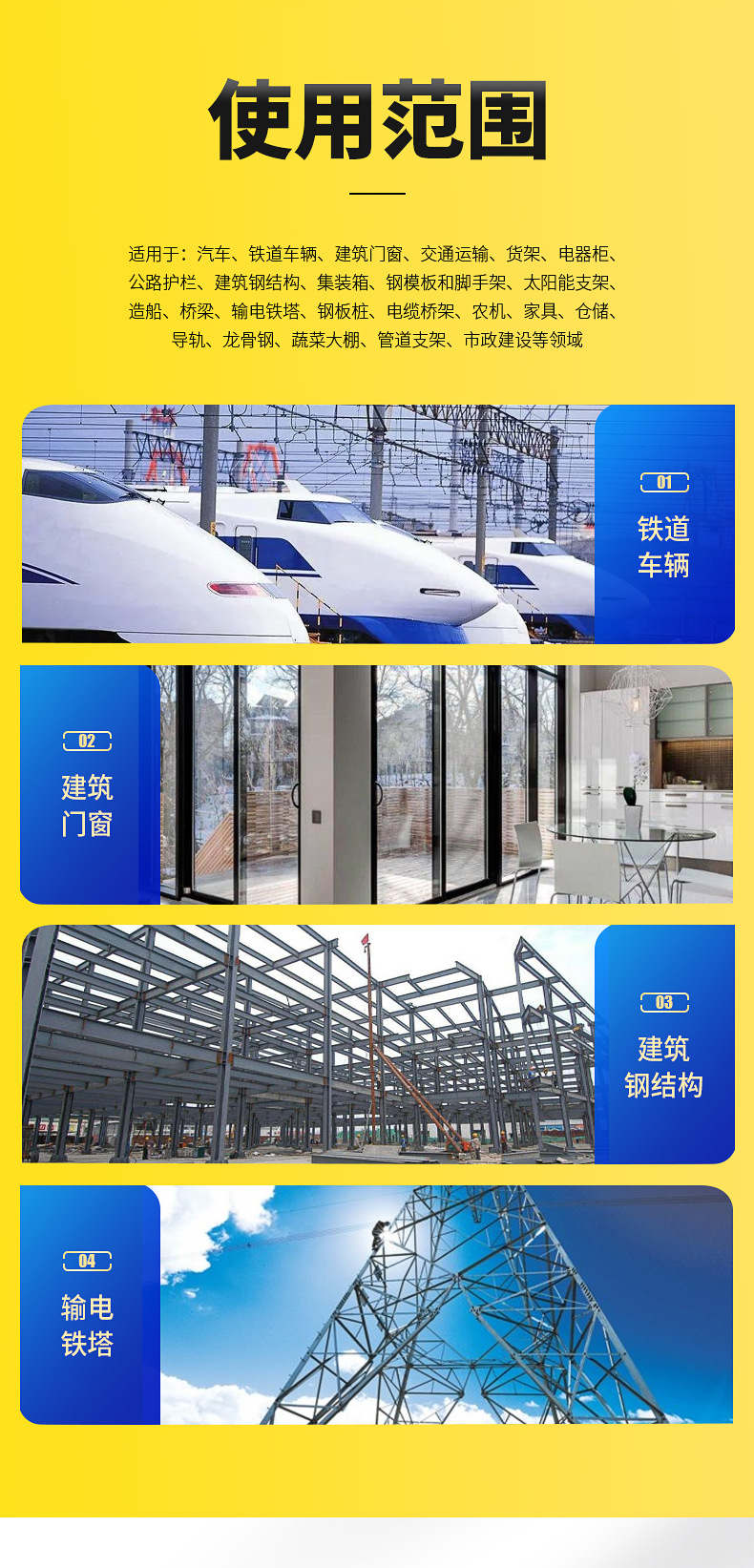 Область применения For cars, Solar energy, Metal products, Household appliances, Precision electronics, Container, Machinery manufacturing, Elevator, Sanitary ware, Rail transit, Pressure vessel, Architectural decoration, Nuclear power, Catering kitchen utensils, Chemical equipment, Daily electrical appliances, Food processing machinery, Structural pipe making