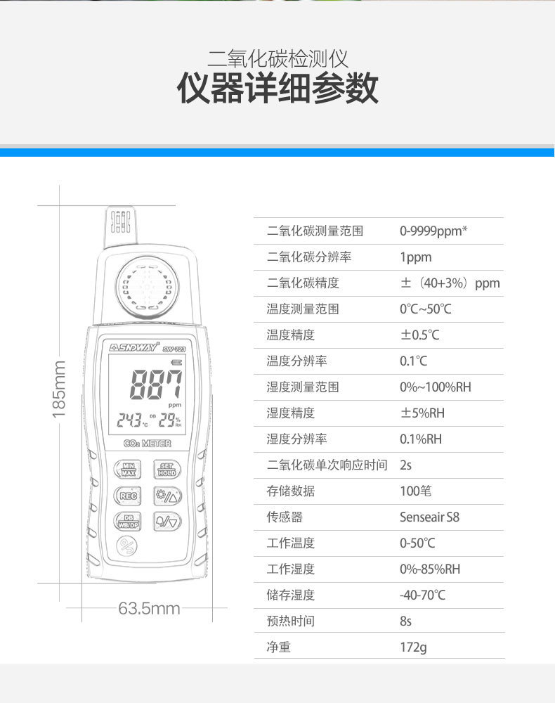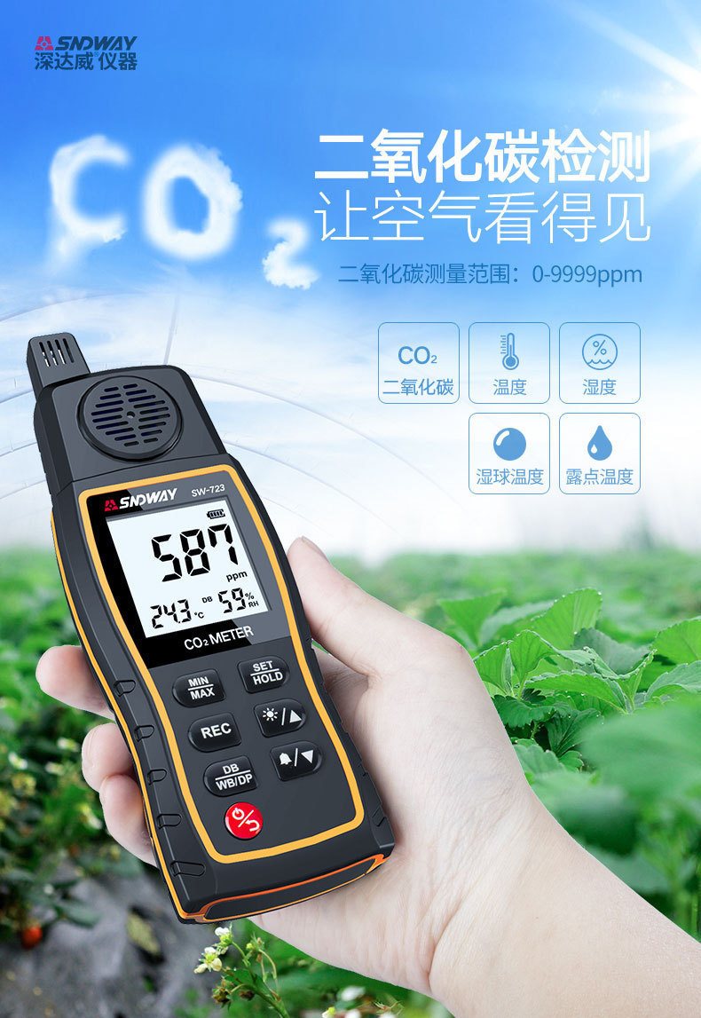 Детектор углекислого газа Shendawei Sw-723 Сигнализатор концентрации Co2 Промышленное разведение