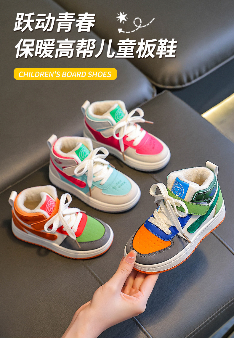 Детские высокие хлопковые туфли, зимние бархатные утолщенные спортивные туфли, кожаные водонепроницаемые кроссовки для студентов, теплые зимние туфли для детей