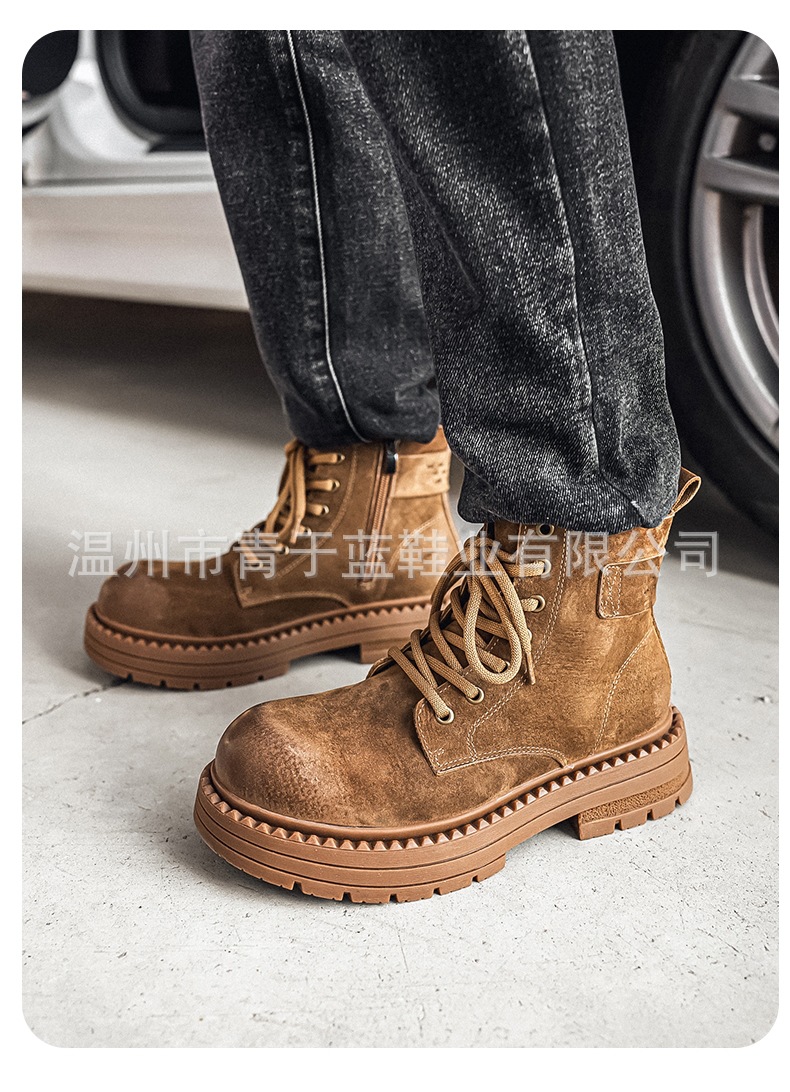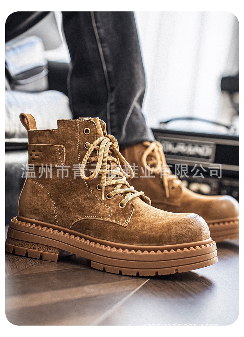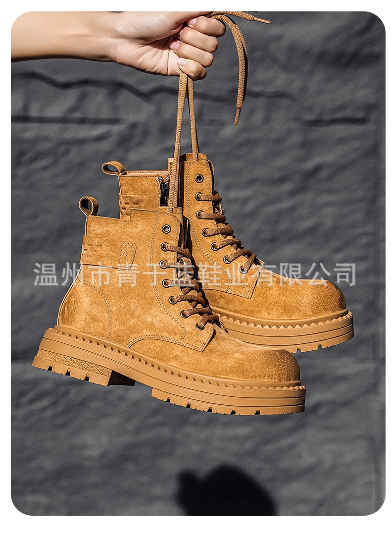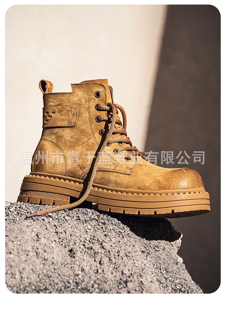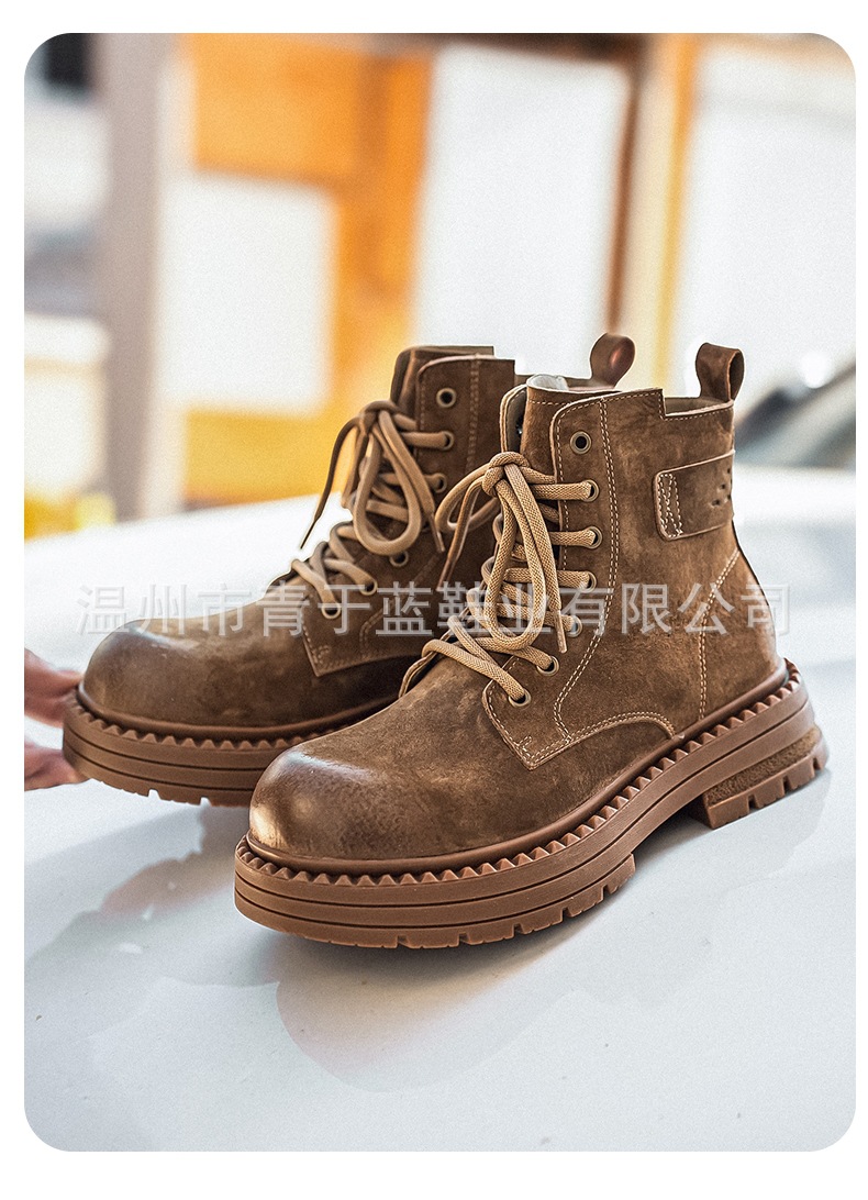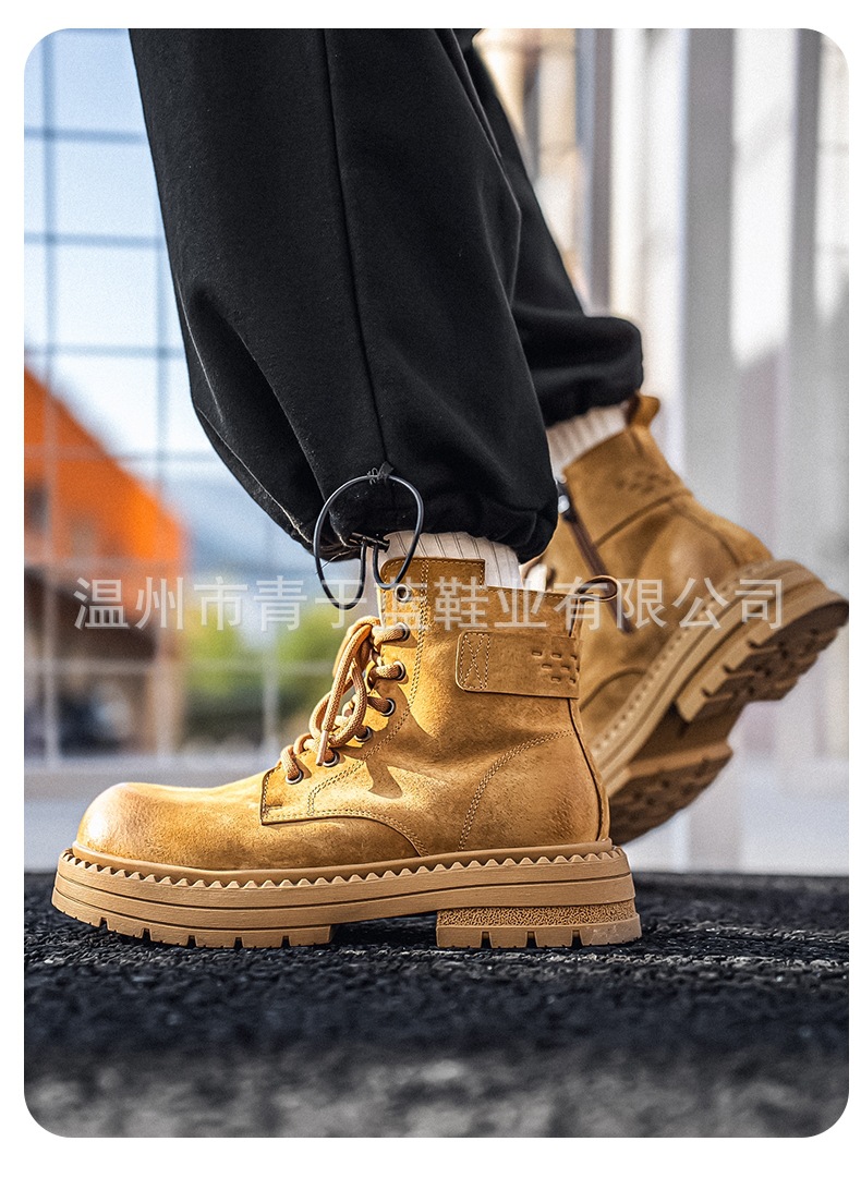 Осенние и зимние ботинки для мужчин, высокие, толстая подошва, потертые рабочие ботинки, шнурованные, из натуральной кожи, ботинки для походов
