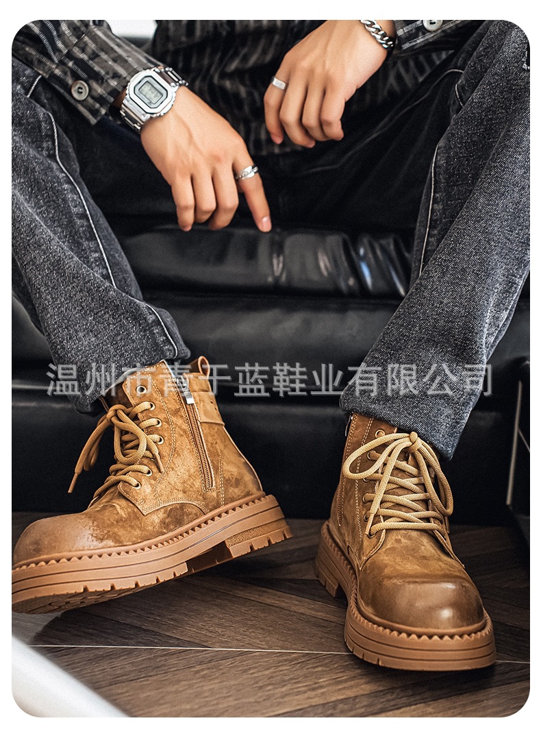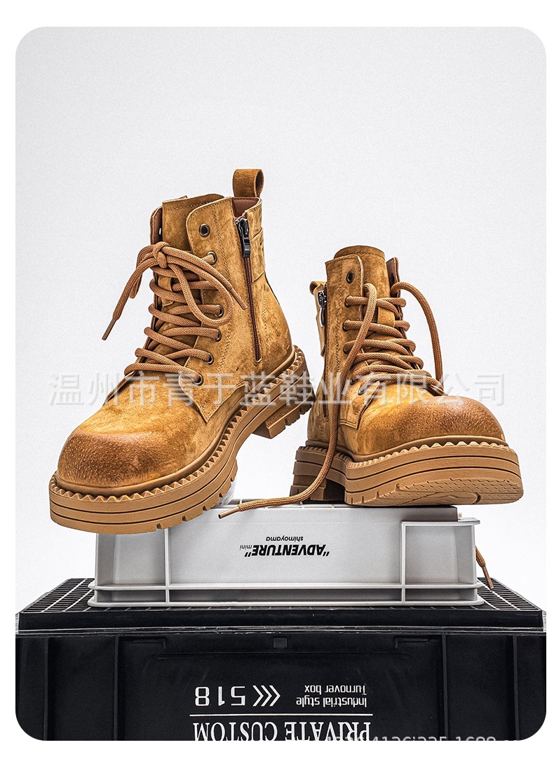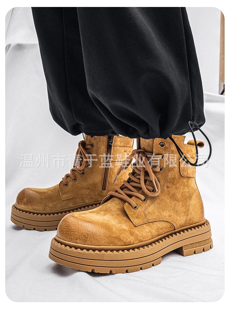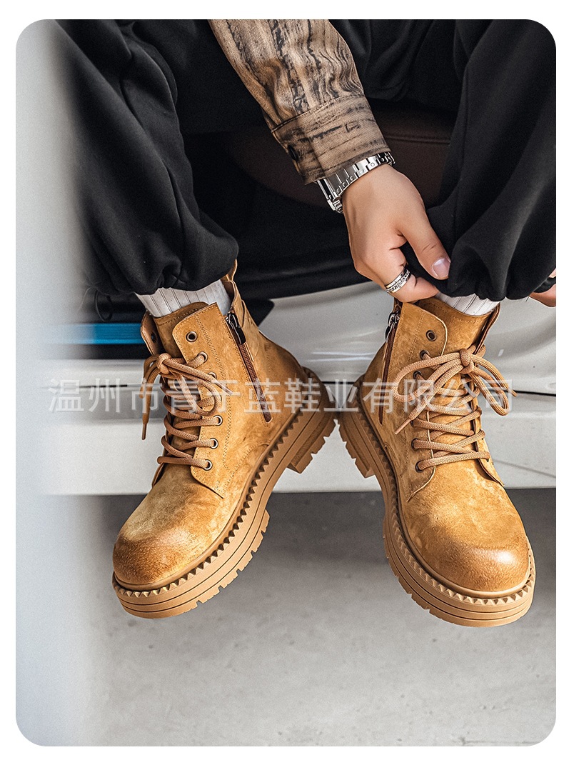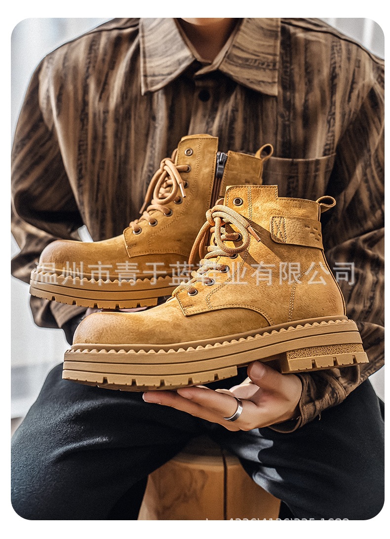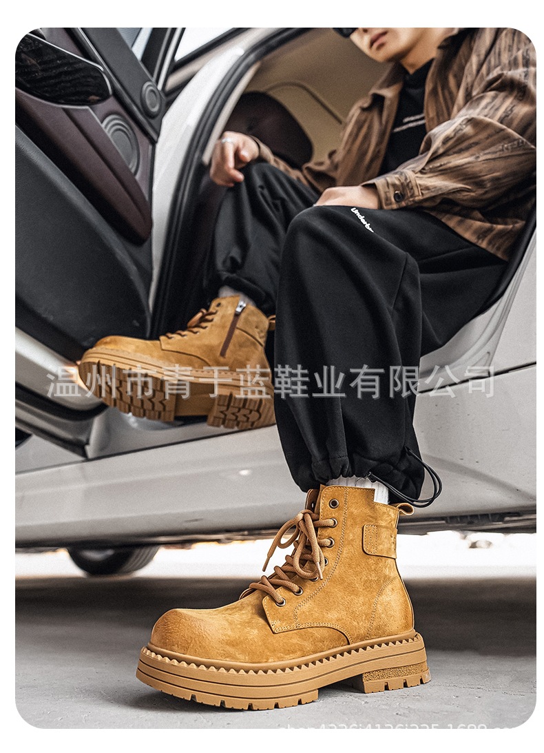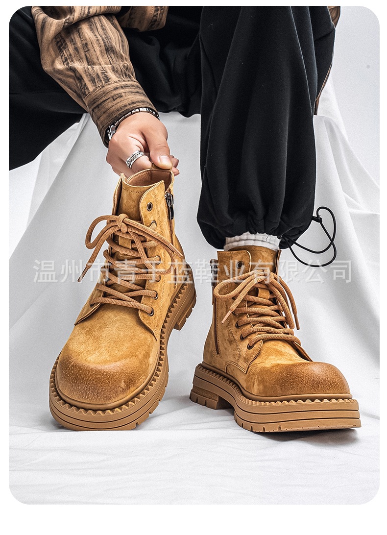 Осенние и зимние ботинки для мужчин, высокие, толстая подошва, потертые рабочие ботинки, шнурованные, из натуральной кожи, ботинки для походов