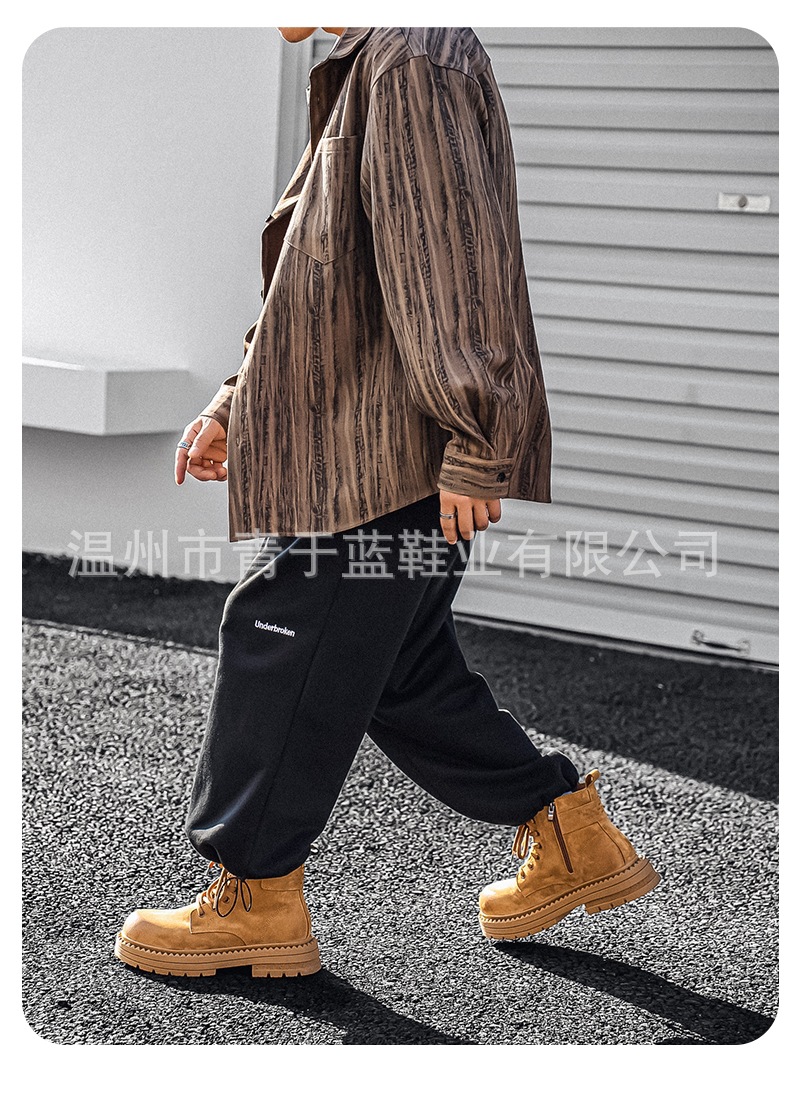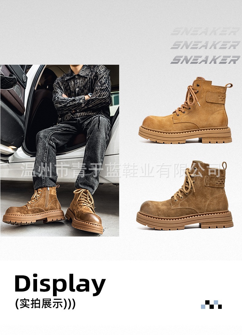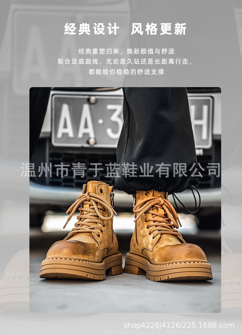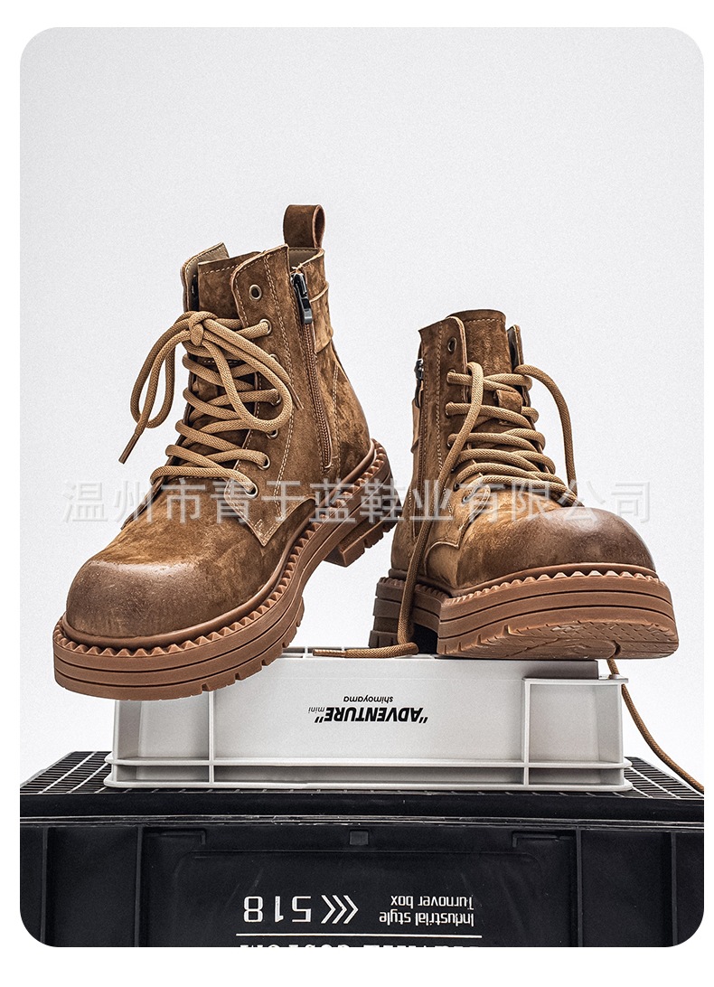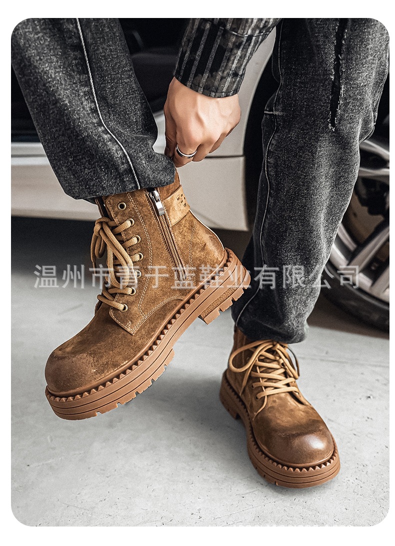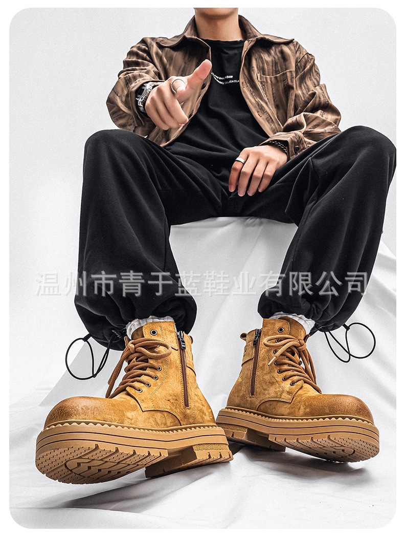 Осенние и зимние ботинки для мужчин, высокие, толстая подошва, потертые рабочие ботинки, шнурованные, из натуральной кожи, ботинки для походов