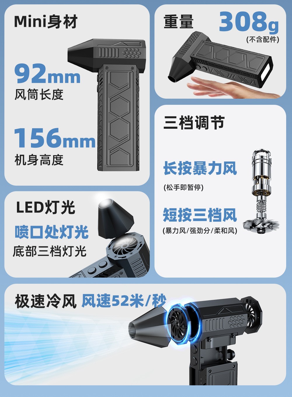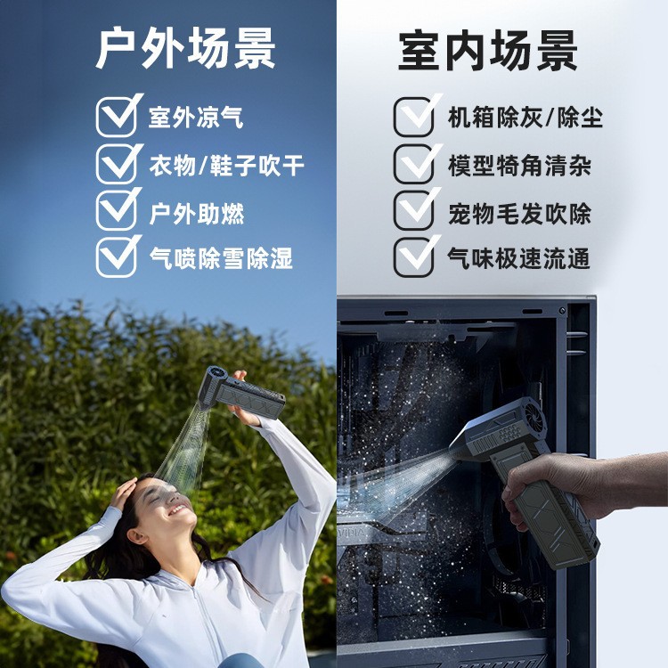 Кросс-бордерный популярный портативный мощный вентилятор, фен для волос, удаление пыли, снежный поток, аварийное освещение, молоток для разбивания окон