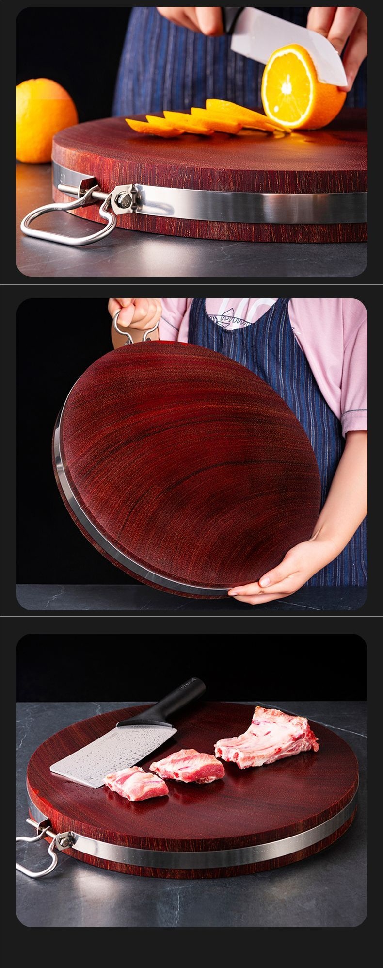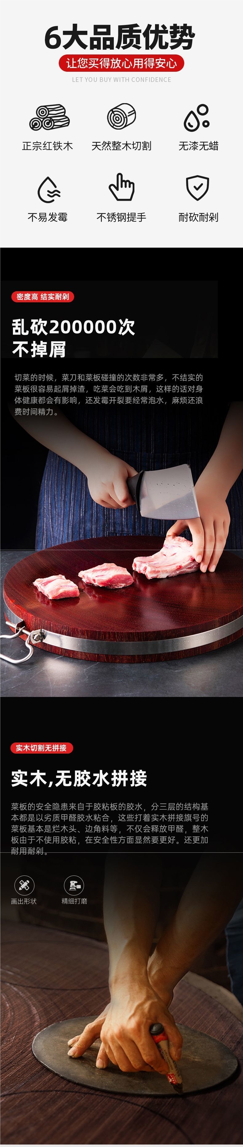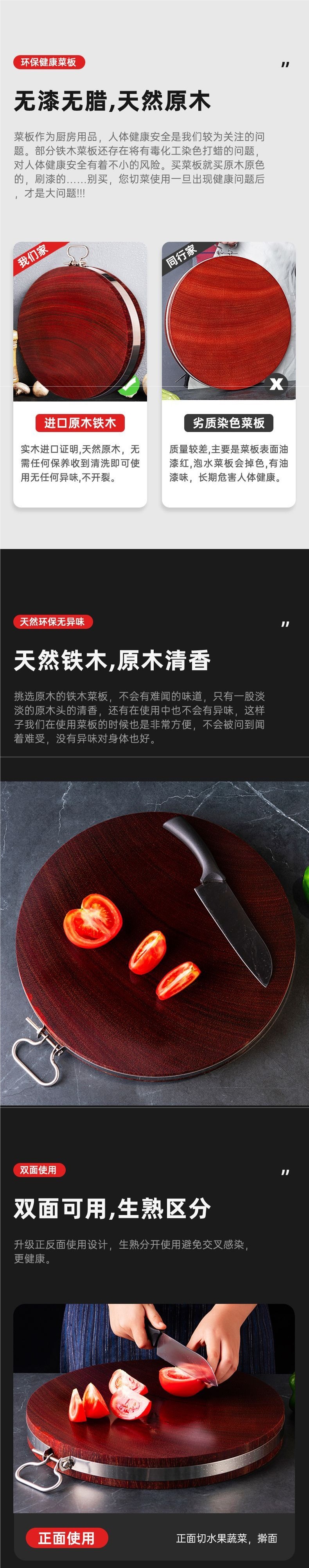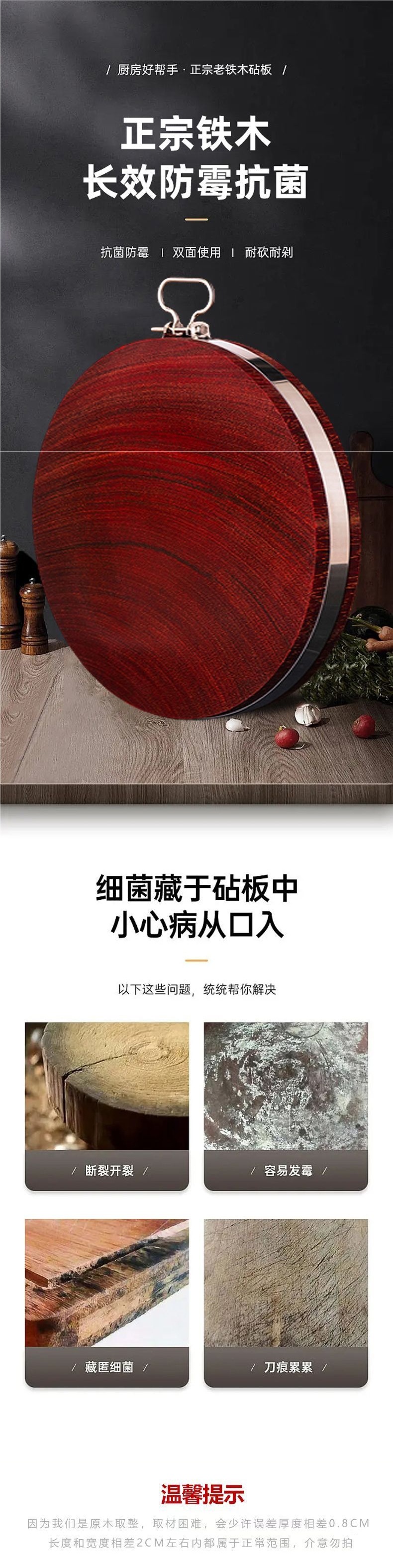 Аутентичная разделочная доска из железного дерева, антимикробная и плеснестойкая, массивная деревянная круглая доска для кухни, утолщенная