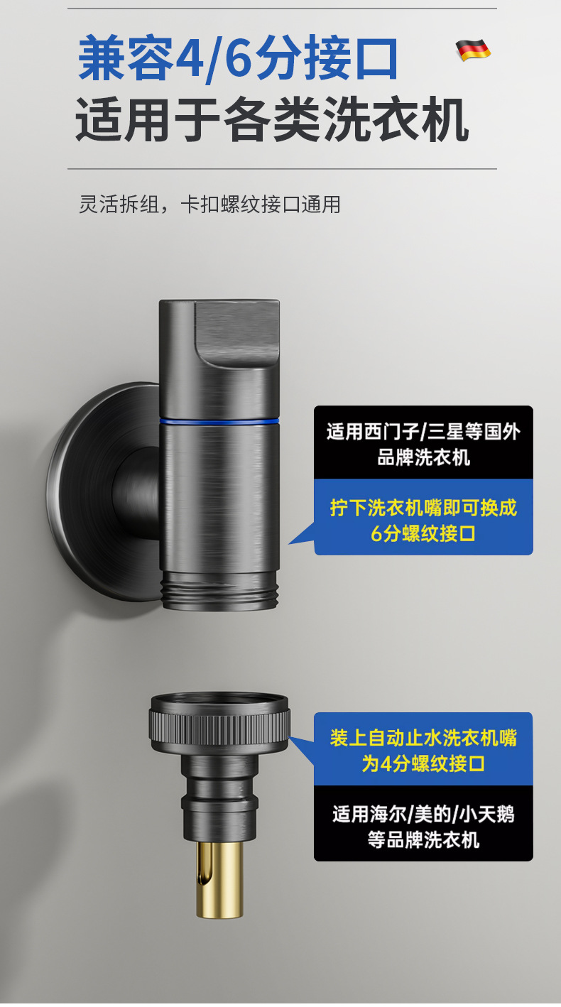 Кран для стиральной машины из латуни с автоматическим стоп-краном, специальный насадка, автоматический уголок 46 градусов, универсальный