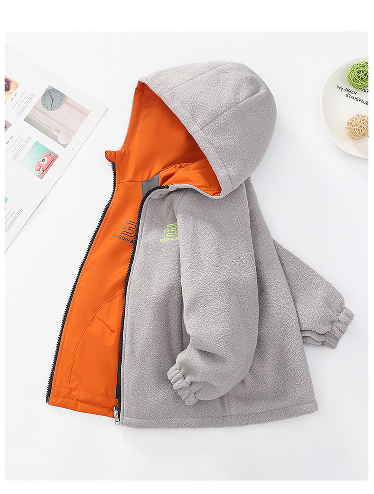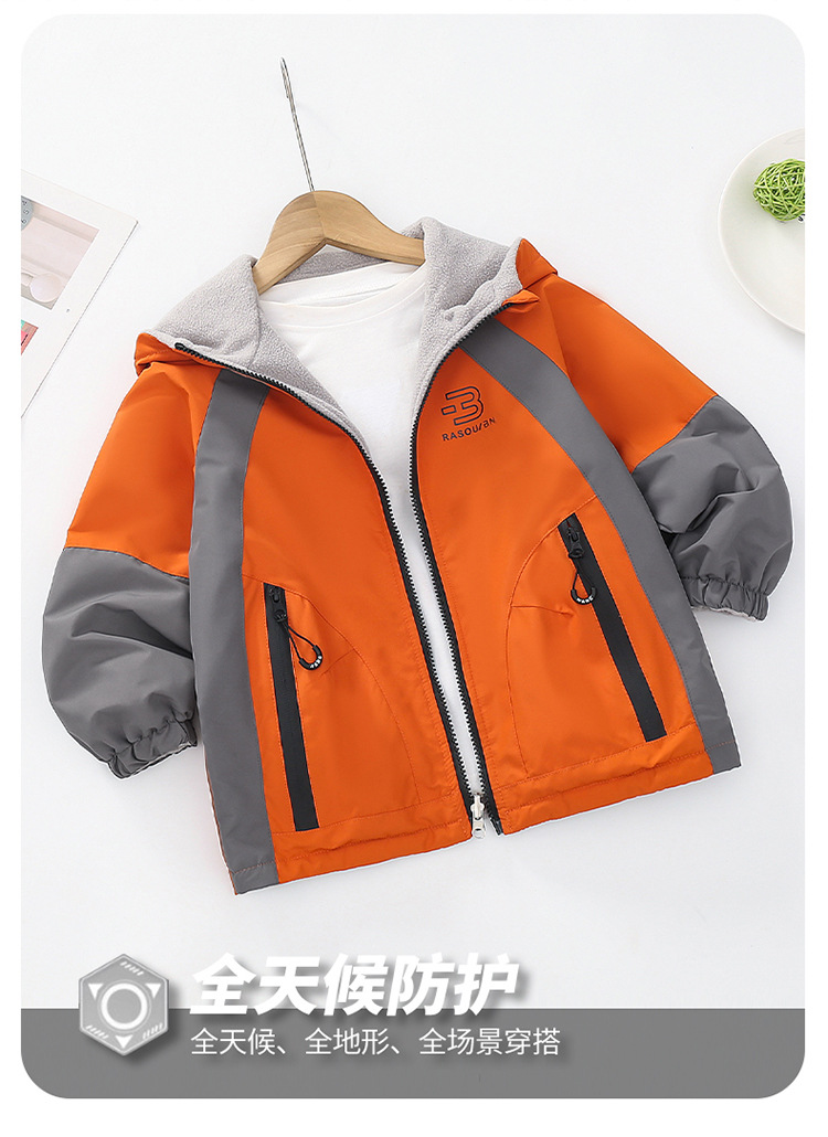 Детская одежда, reversible куртка с флисовой подкладкой для мальчиков, весенне-осенняя, контрастные цвета, водоотталкивающая, новый тренд 2025