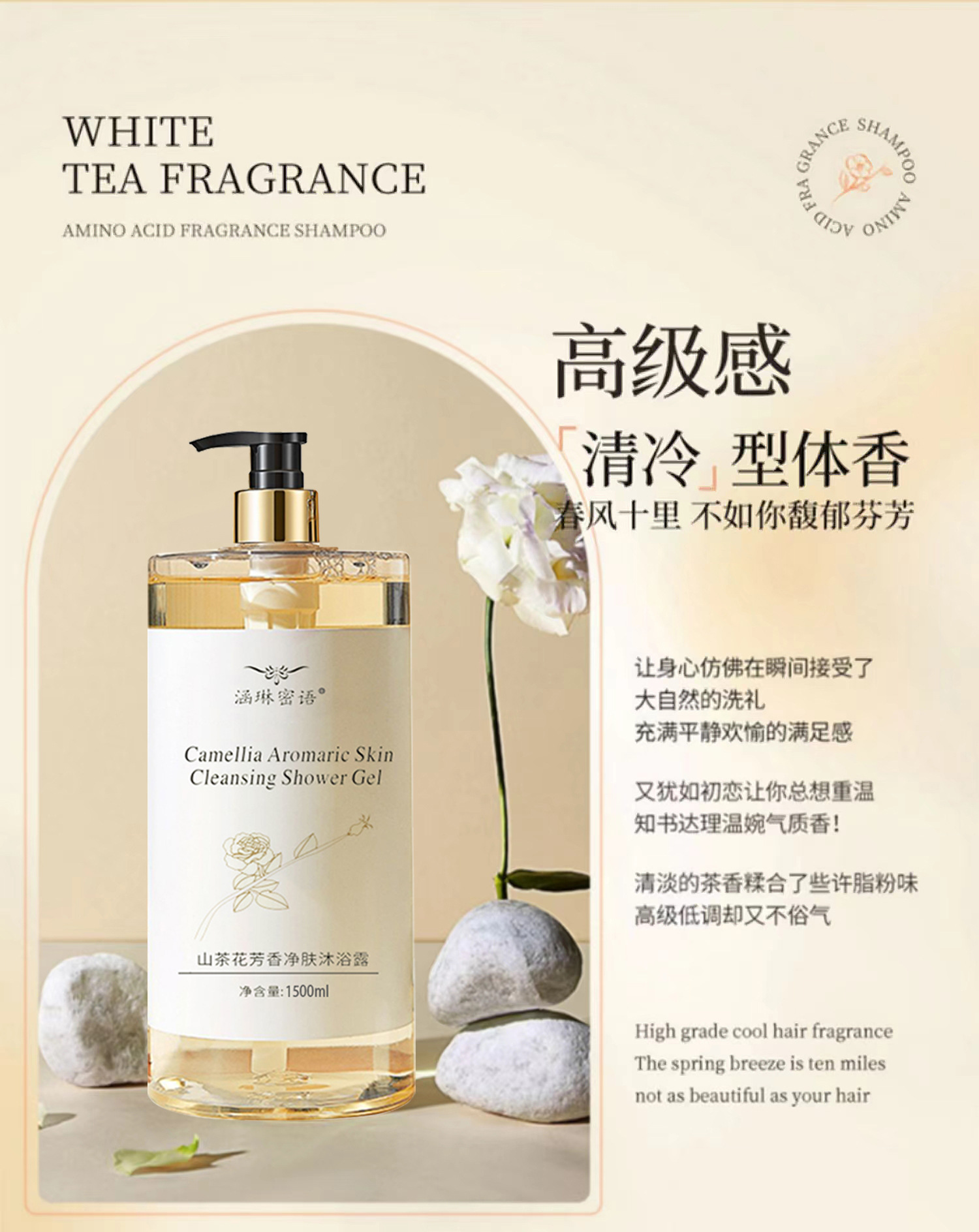 Пакет 1.5кг геля для душа Камелия, длительный аромат, увлажняющий парфюм, большой семейный пакет для мужчин и женщин