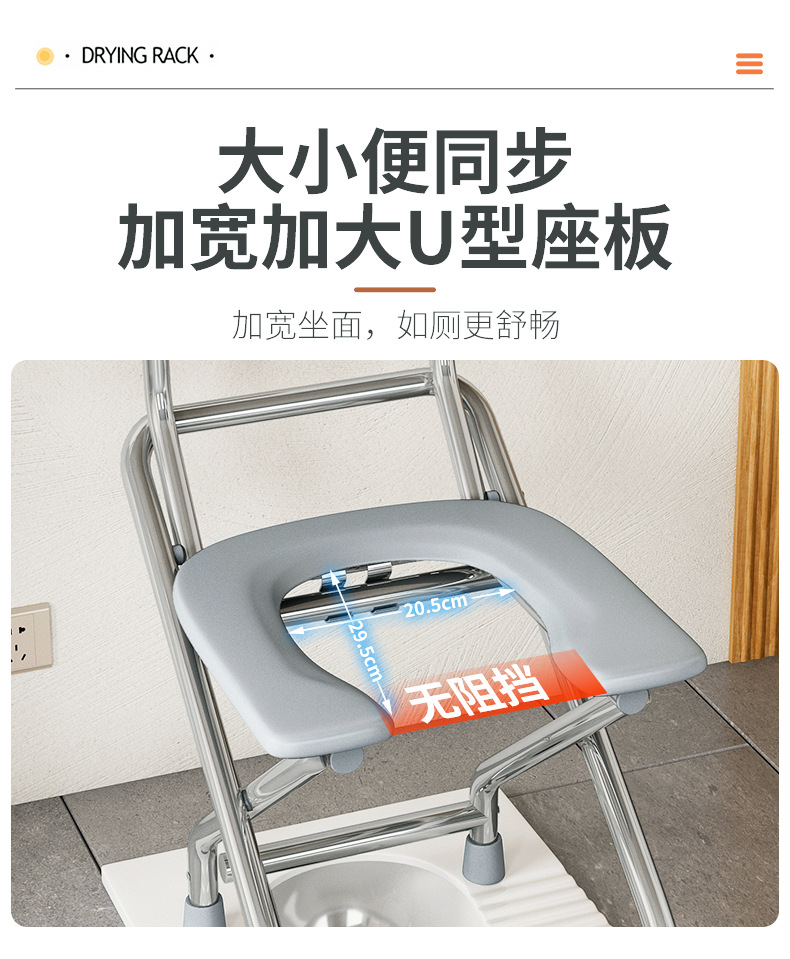 Складной туалет из нержавеющей стали для пожилых, туалетный стул для беременных, туалетный стул для приседания, нескользящий туалет, U-образный для пожилых