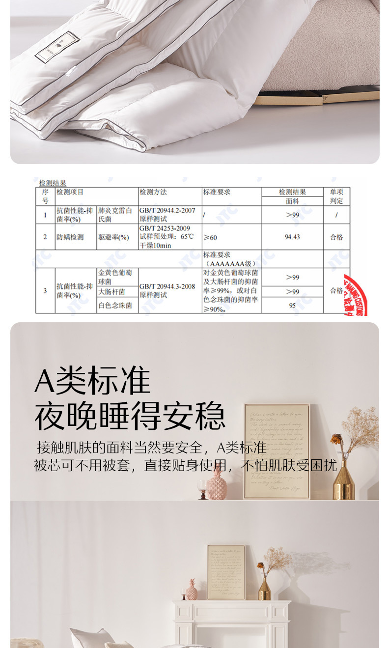 填充物:鸭绒(绒子含量90%)(法国鸭绒)