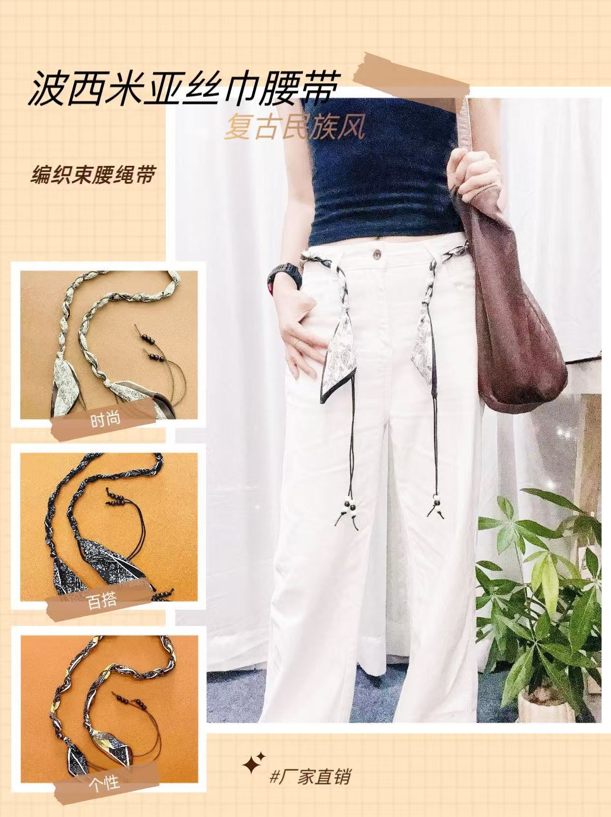 Шелковый пояс-скарб с годом Лошади, этнический стиль, плетеный пояс для талии, бохо, универсальный ретро стиль, декоративный аксессуар