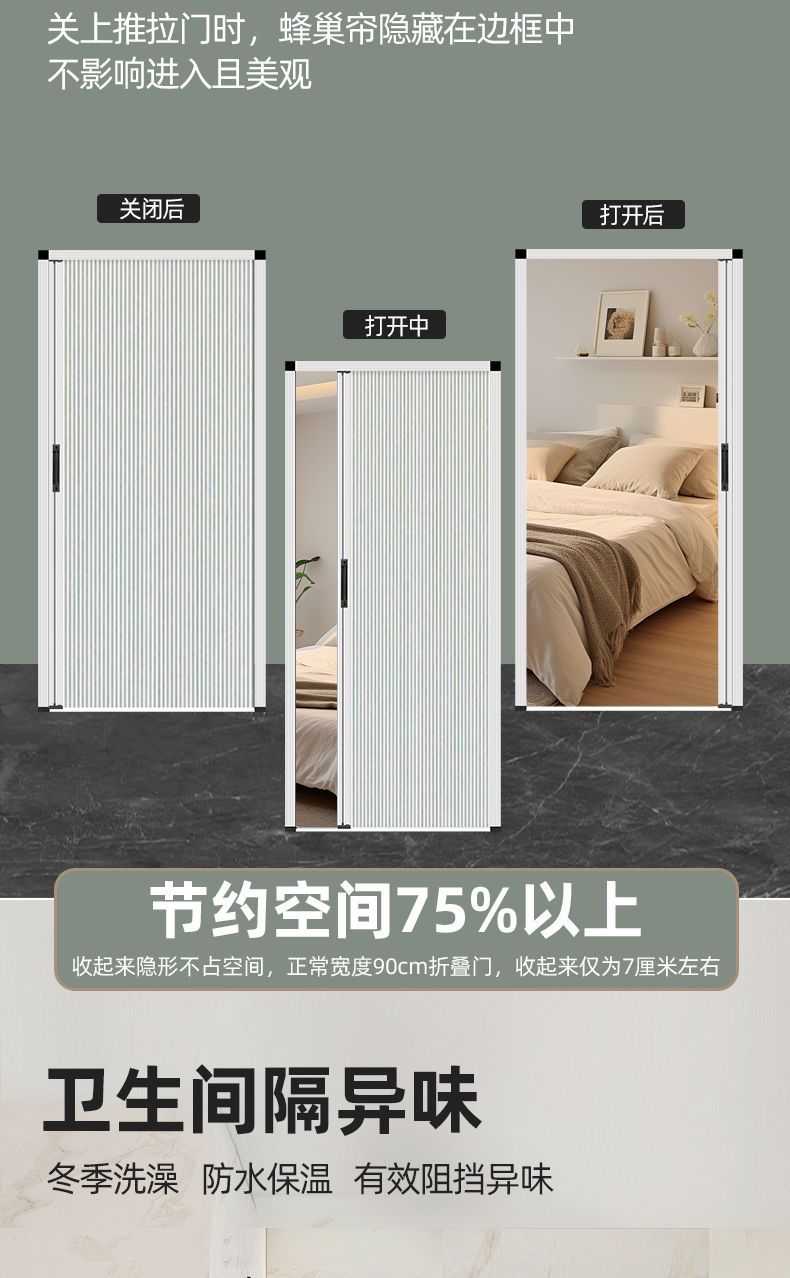 Новая скрытая складная сотовая штора для двери спальни, тепло- и холодоизоляция, защита от влаги для ванной, кухня и гостиная, без сверления