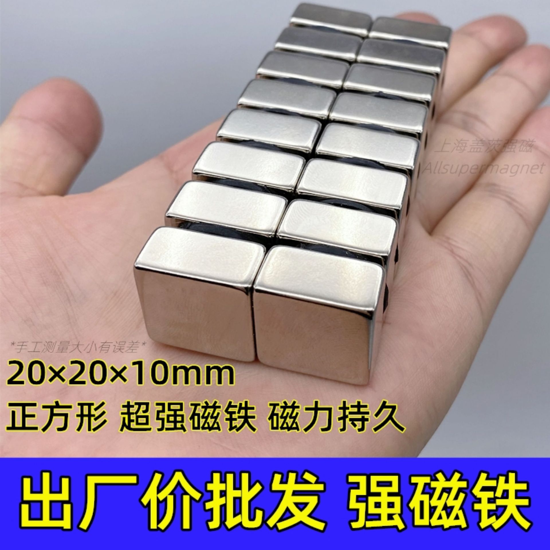 Квадратный магнит, сильный магнит, магнитная сталь, супер сильный неодимовый магнит 20х20х10мм