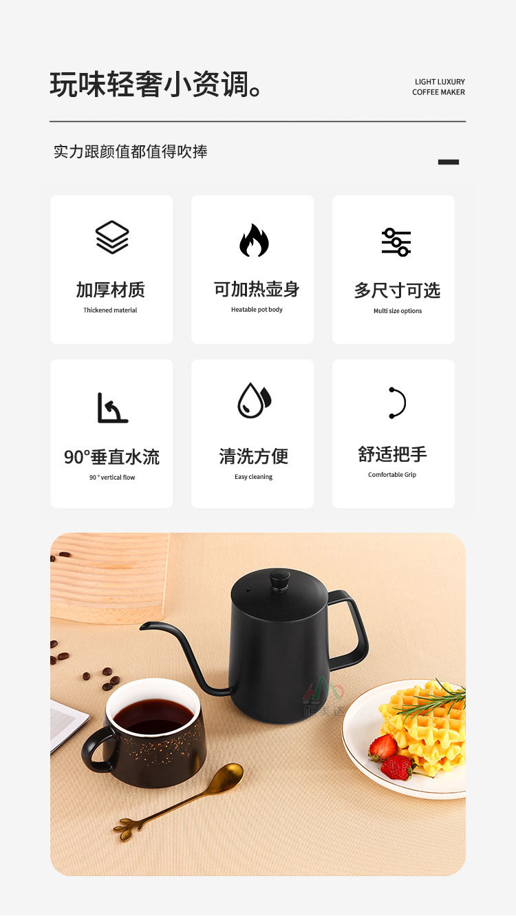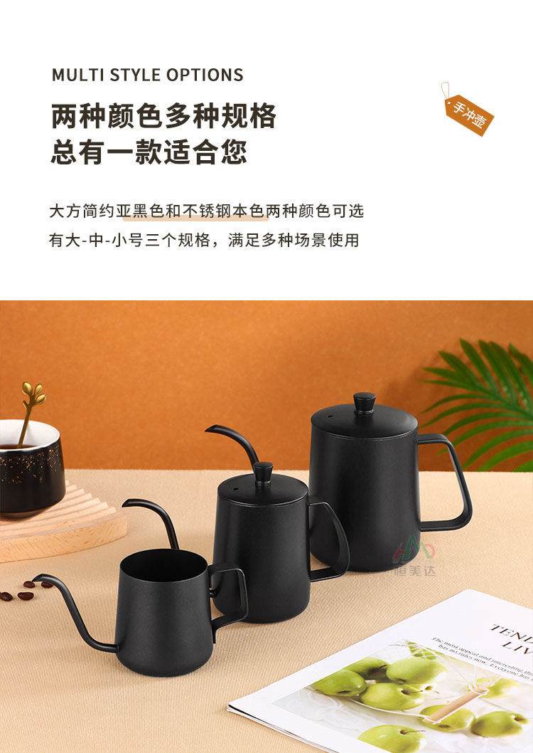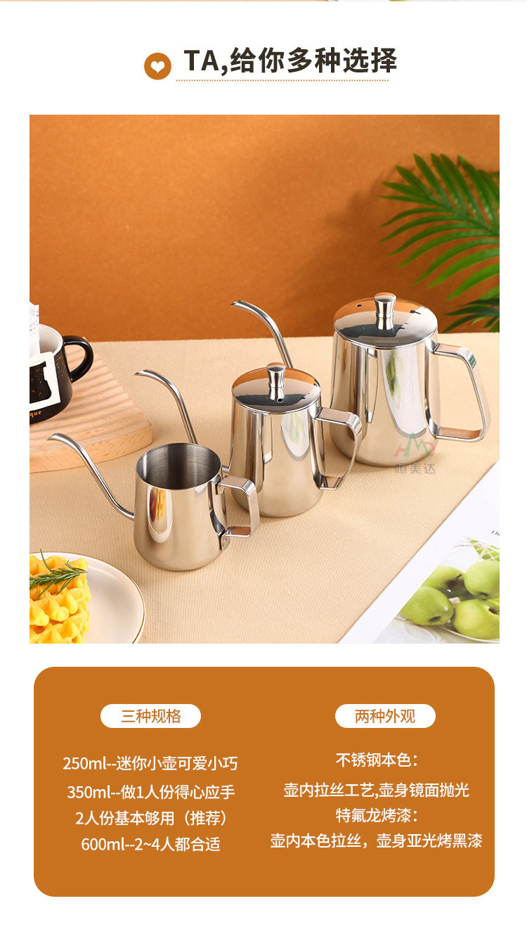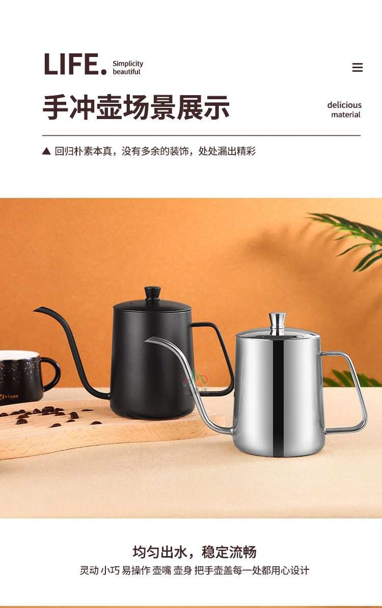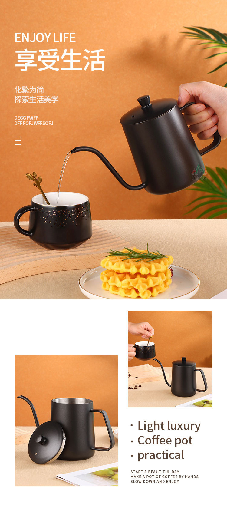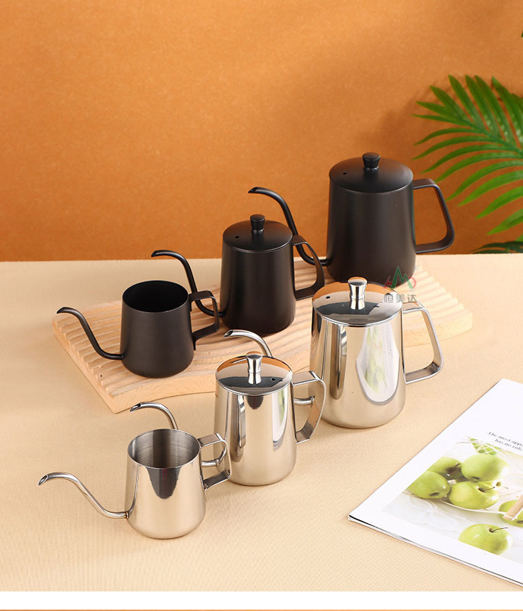 Кофейник из нержавеющей стали 304 для заваривания кофе, утолщенный с крышкой, домашний чайник с длинным носиком и узким горлом, аксессуары для кофе