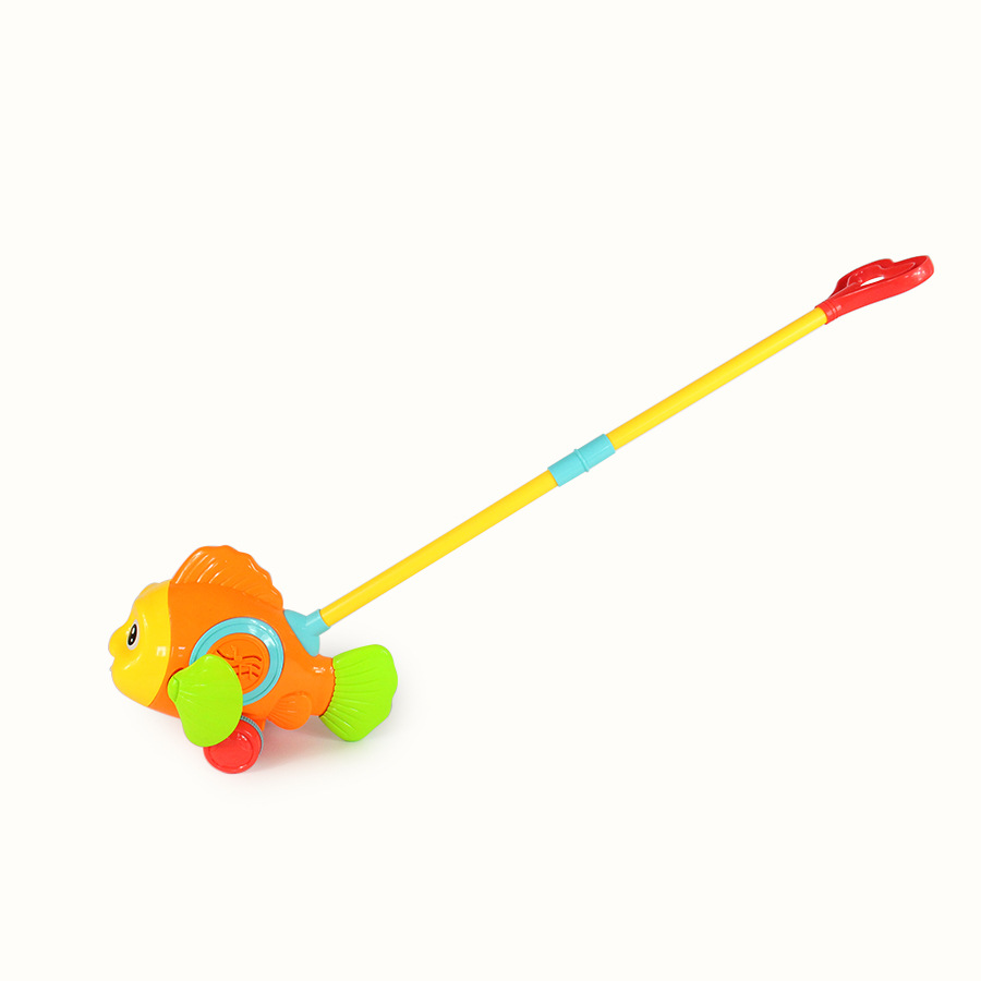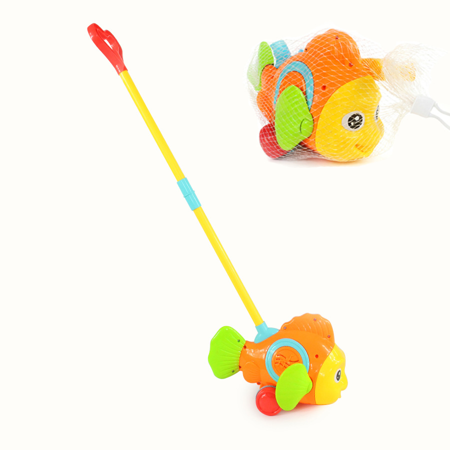 Толстая рыба, детская игрушка для толкания самолета, пластиковая игрушка, толкатель с одним колесом и колокольчиком