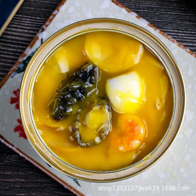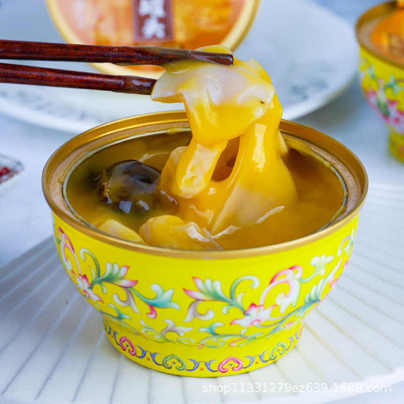 Маленькая золотая чаша супа с анчоусами и птичьим гнездом Будды с гребешками, shredded курицей, черным трюфелем и абалоном - консервированная морская деликатес 240г