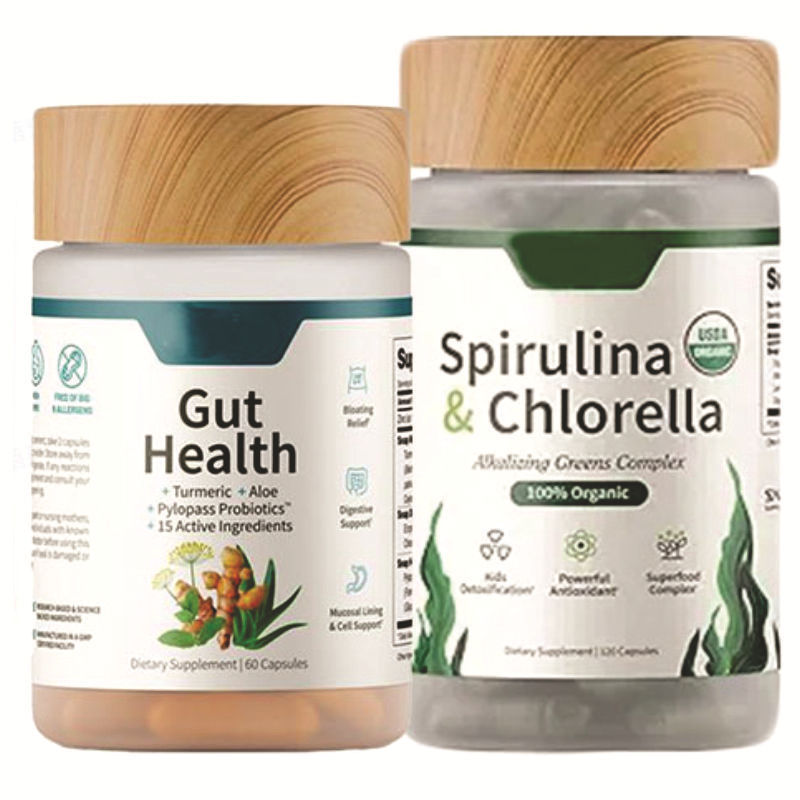 Комбинированная упаковка капсул спирулины и хлореллы с хлорофиллом