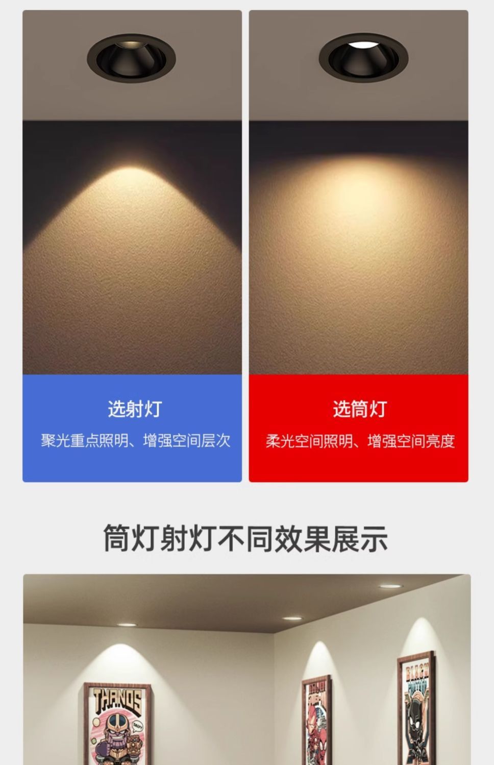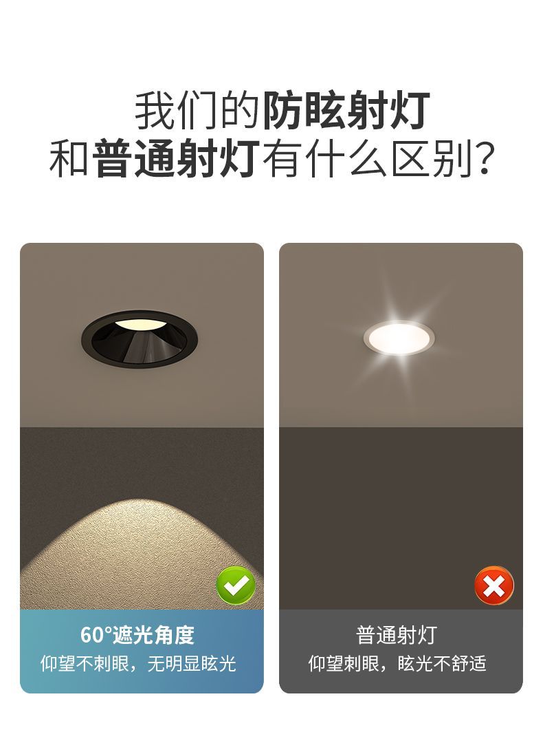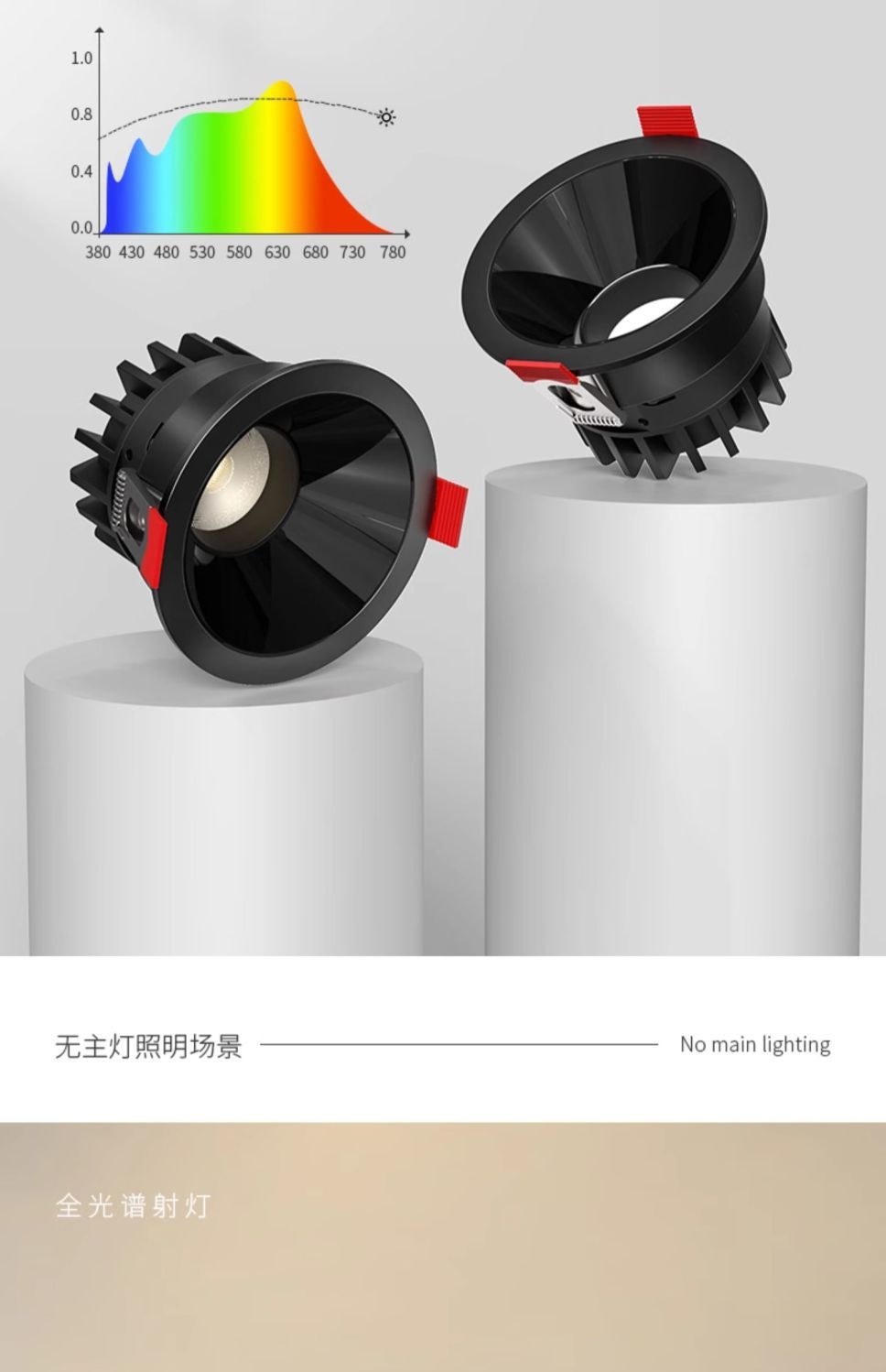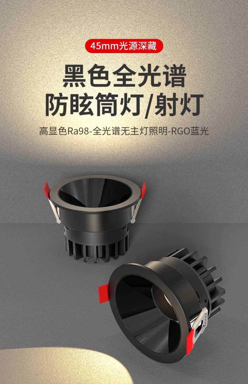 Черный полноспектровый глубокий антибликовый прожектор для домашнего гостиной встроенный светодиодный точечный свет без основного света освещение холма