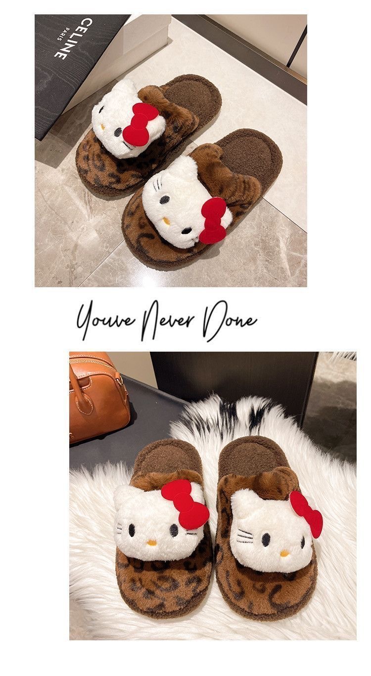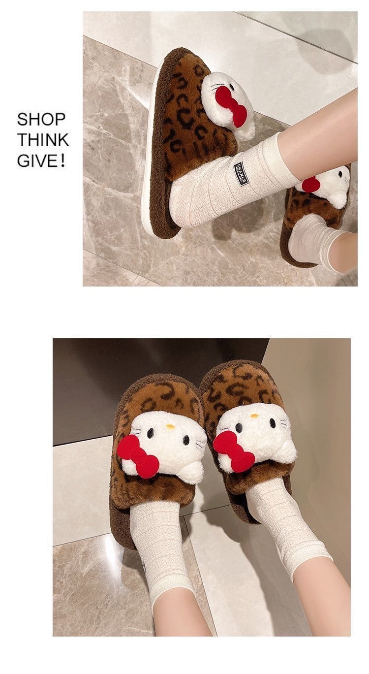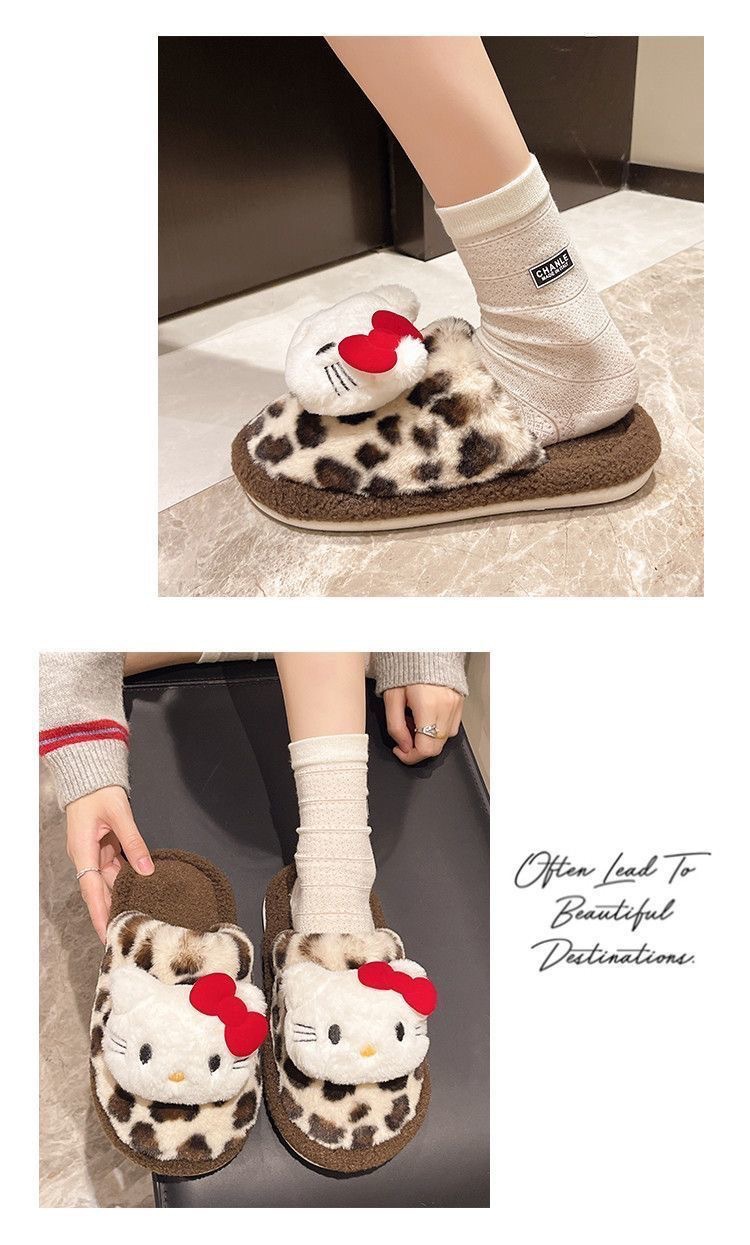 Модные милые тапочки с кошками для женщин, на открытом воздухе, новая коллекция осень/зима 2025, мультяшный леопардовый принт, толстая подошва