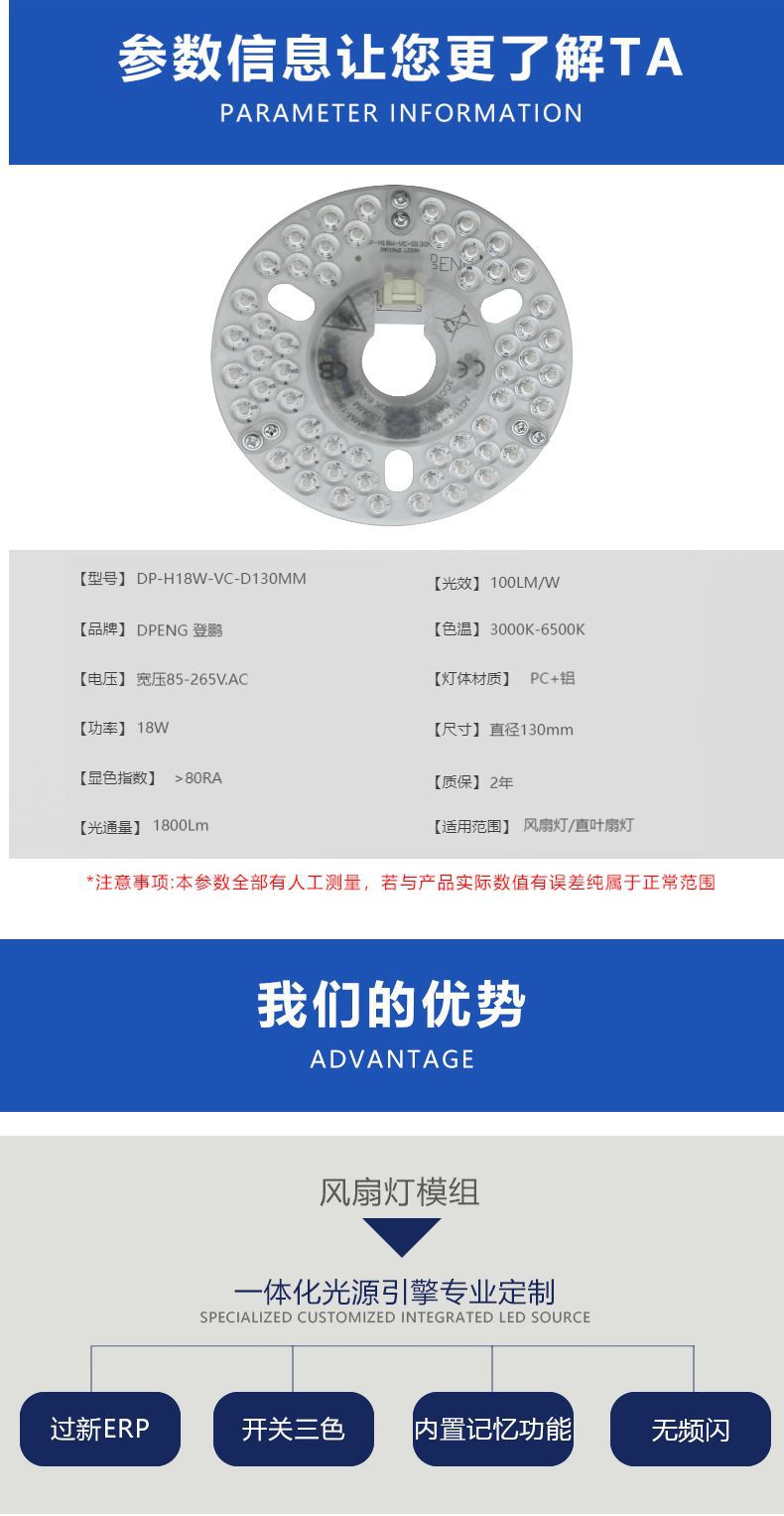 130мм модуль источника света вентилятора широкого напряжения 18W заменяемое световое ядро 120V230V плоская лопасть световой панели