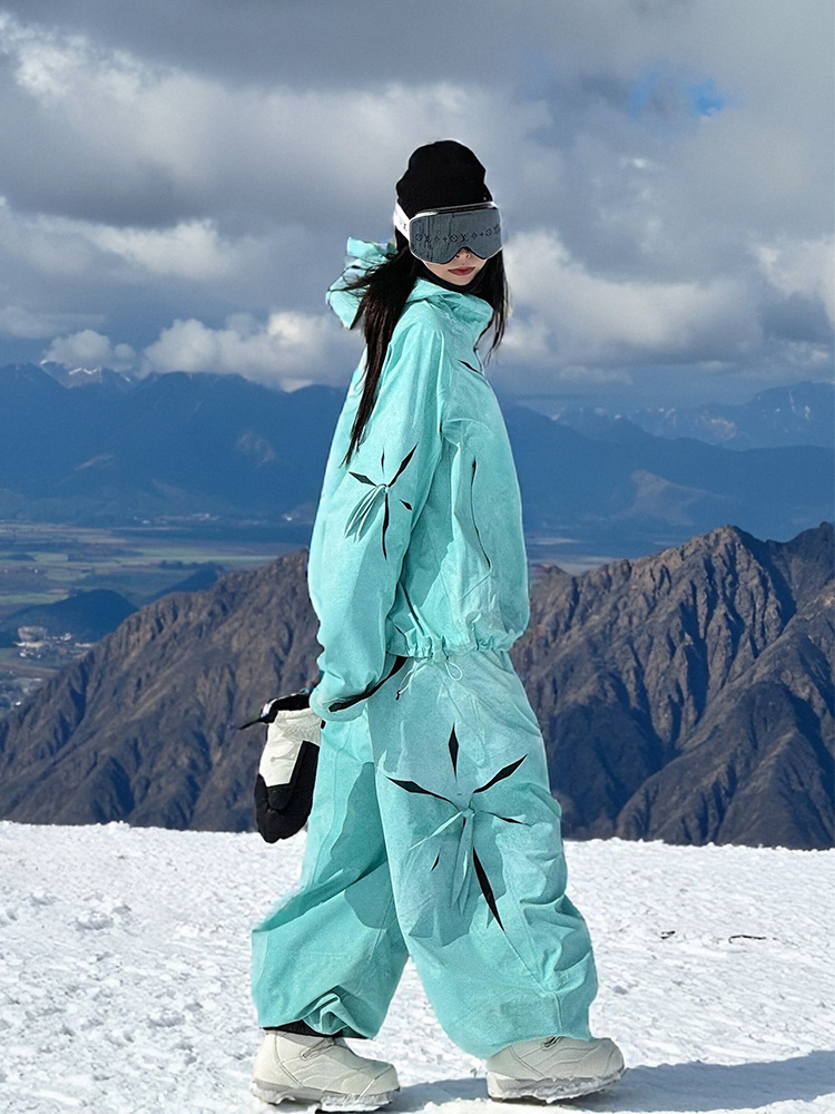 Фуян зеленый комплект лыжного костюма для мужчин и женщин, новый стиль зимы 2025 года, уличная ветронепроницаемая и водонепроницаемая куртка для пар