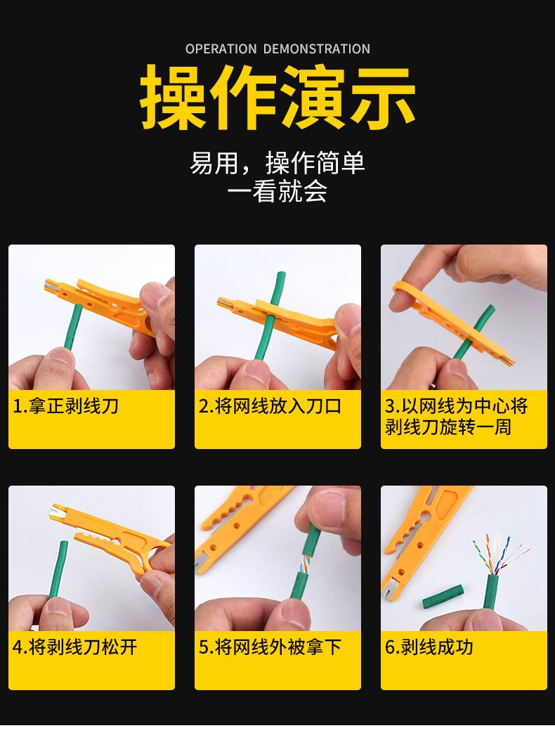 Желтый маленький инструмент для снятия изоляции для кабелей, простой нож для снятия изоляции для сетевых кабелей, нож для снятия изоляции телефонной линии