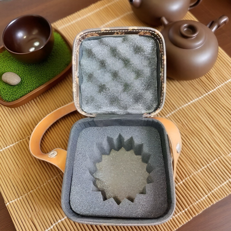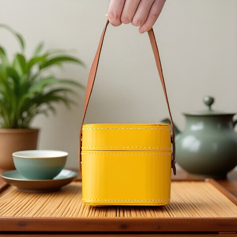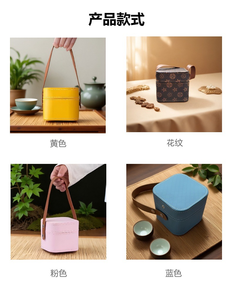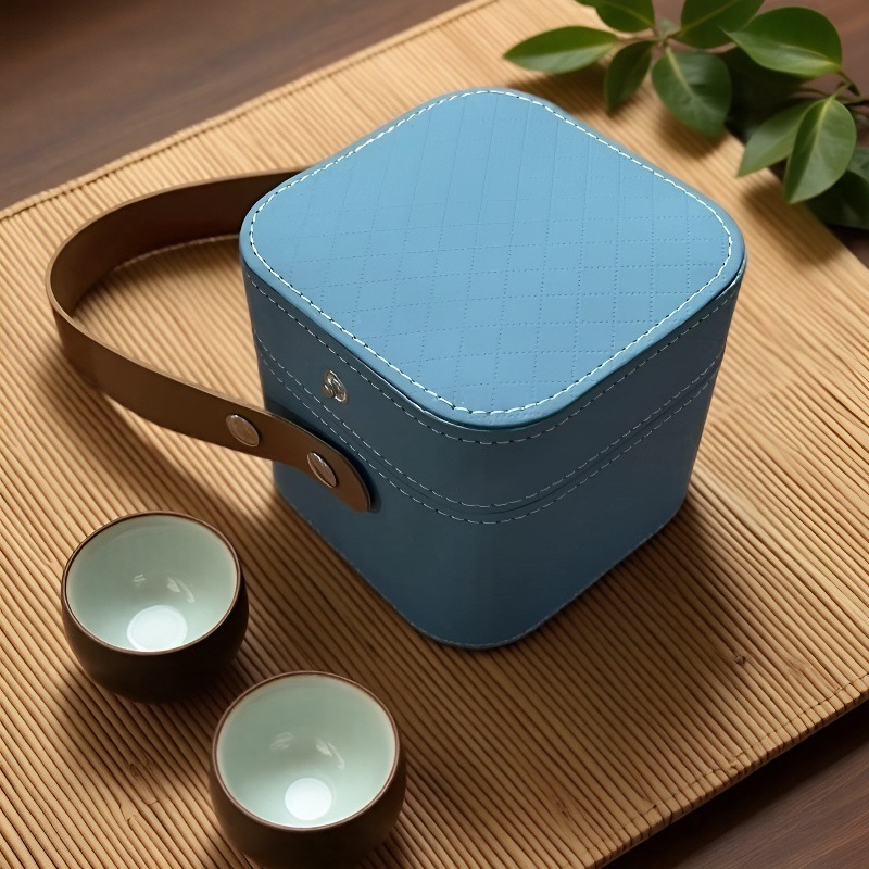 Косметичка с керамическим чайным набором, портативная сумка для путешествий, ударопрочный чайник, четыре чашки, две чашки, сумка, кожаная сумка с логотипом