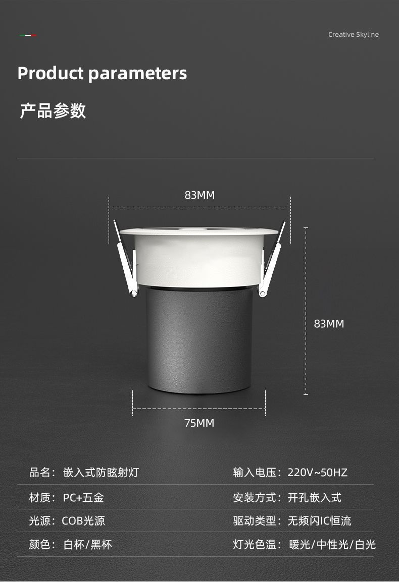 Полноспектровый встроенный прожектор глубокая чаша антибликовый для домашнего гостиной цветочный светильник точечный свет без основного света стена мойка