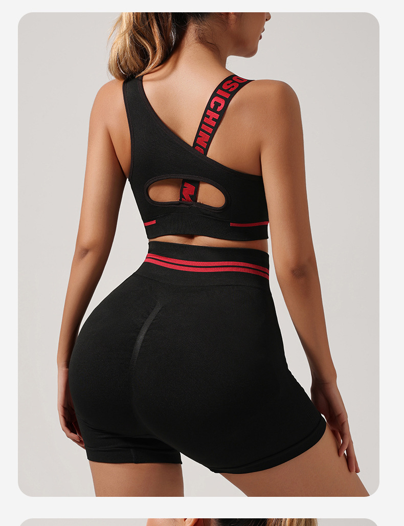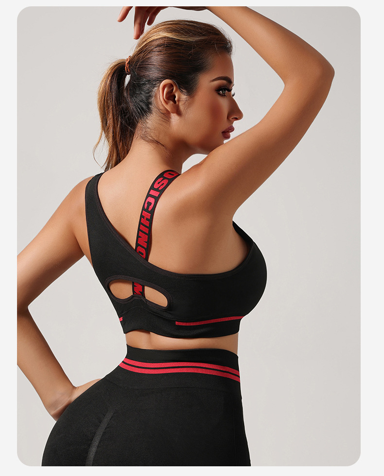 Кросс-бодрствующий спортивный бюстгальтер на одно плечо с эластичной лентой, поднимающий, комплект из трех предметов для бега и фитнеса