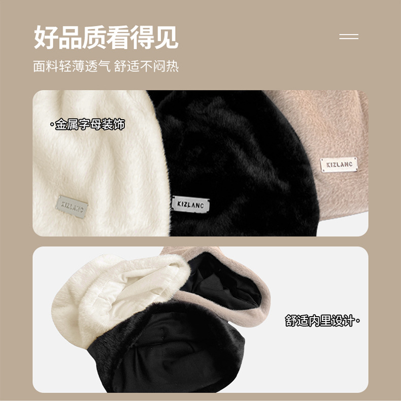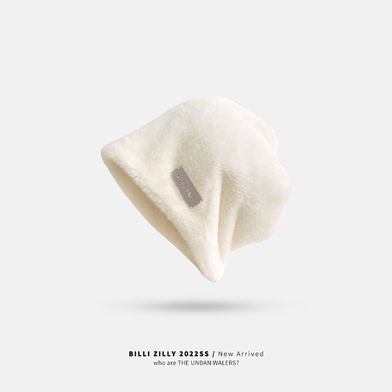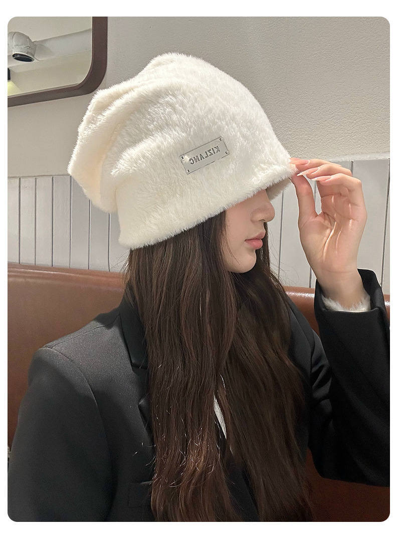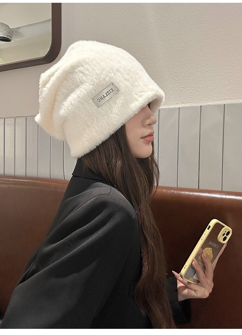 Шапка из кроличьего меха для женщин, осень и зима, новая холодозащитная и теплая, белая плюшевая шапка с шарфом, ведерко