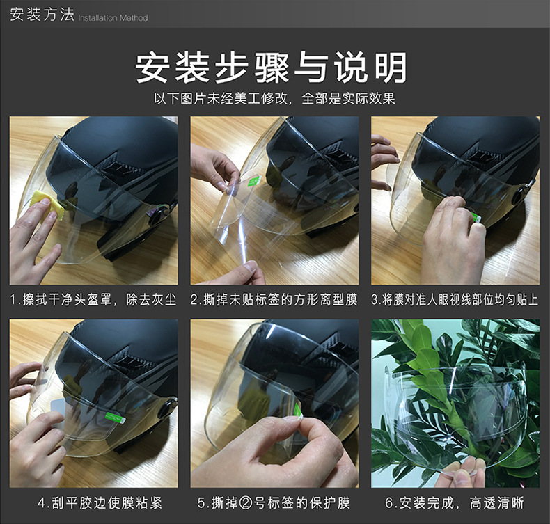 01 Electric motorcycle helmet hd anti-fog lens film, cycling safety helmet rainproof film, waterproof sticker, universal fit