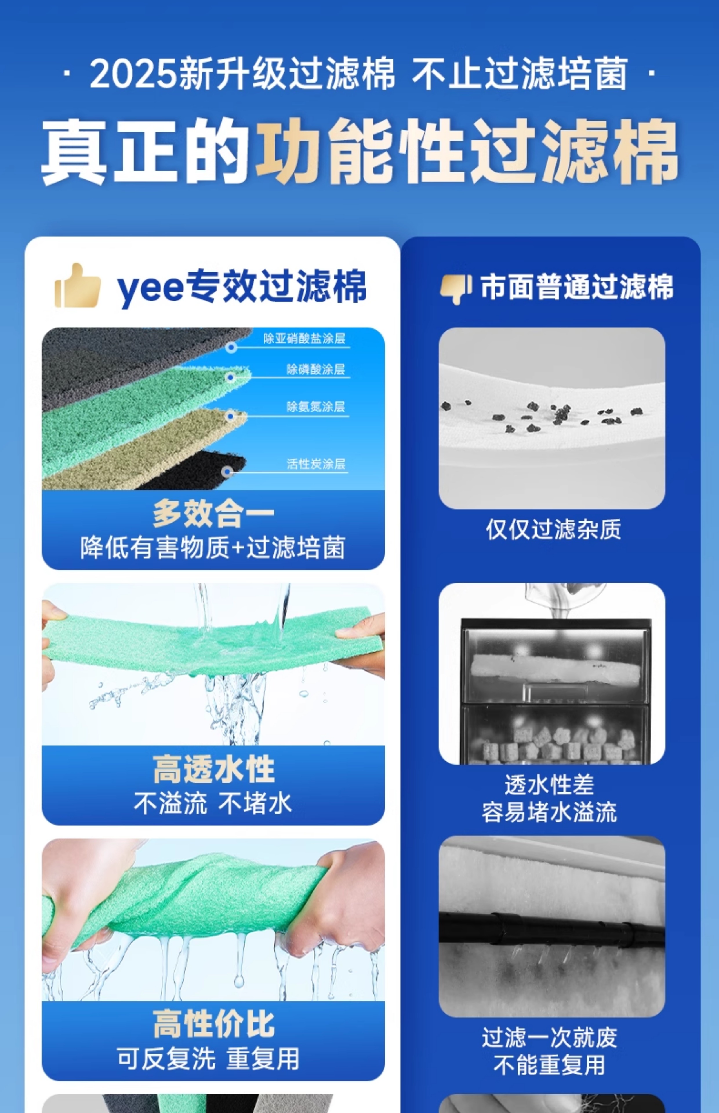 Фильтр для аквариума Yee из хлопка для ультрафильтрации, утолщённый, с высокой плотностью, для очистки воды и культуры бактерий