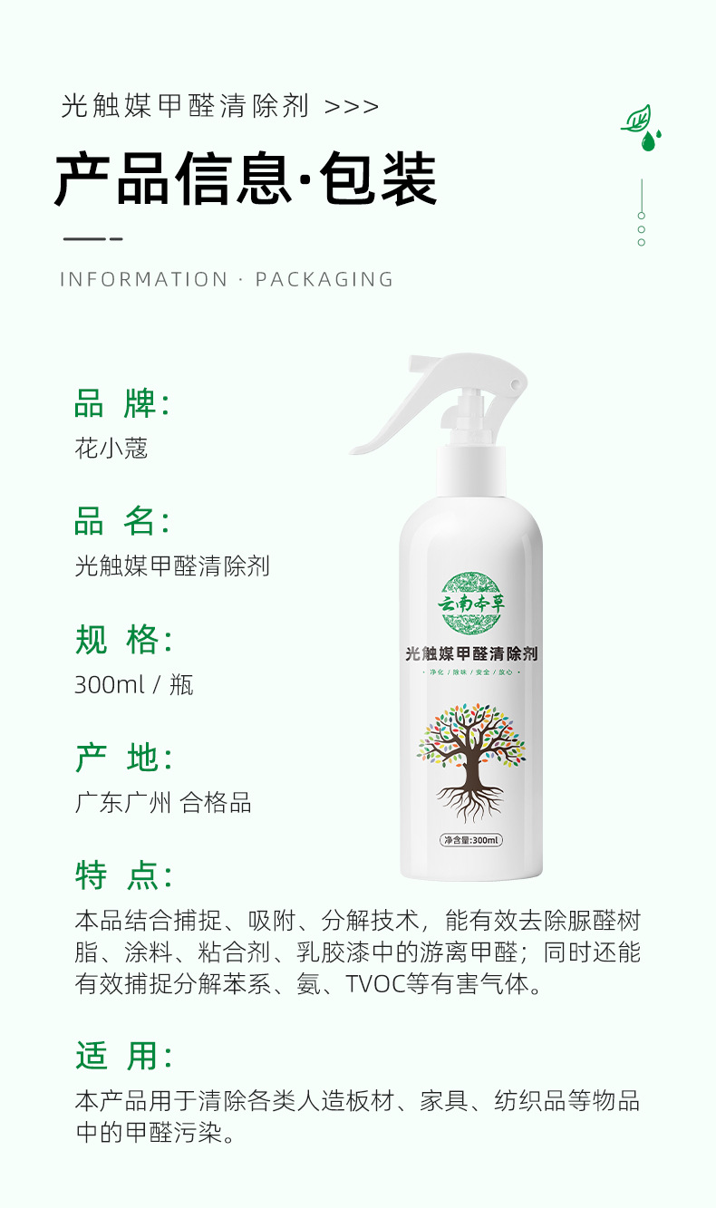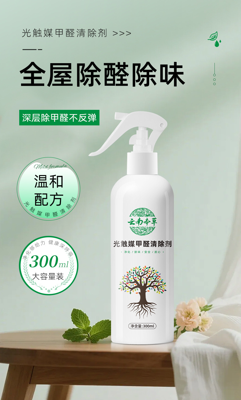Цветочный кардамон, фотокаталитический очиститель формальдегида, для нового дома, бытовая очистка воздуха, спрей для удаления формальдегида, дезодорирующий спрей 300 мл