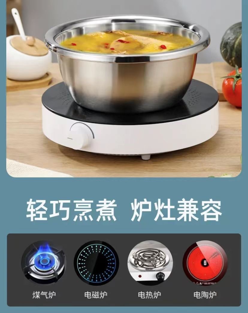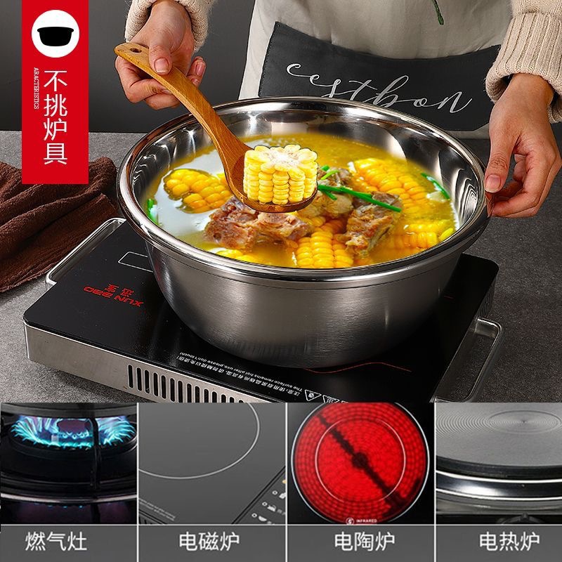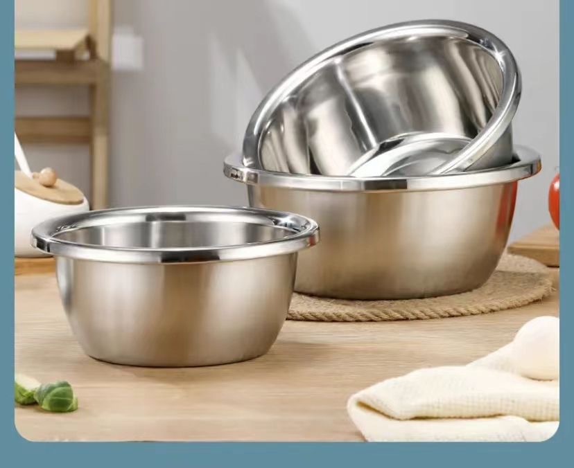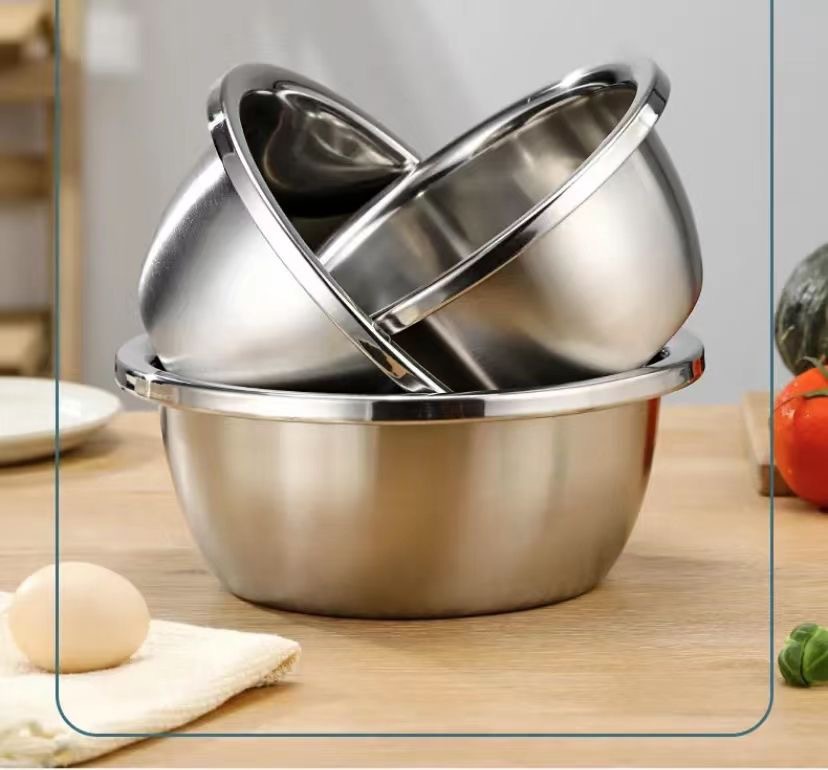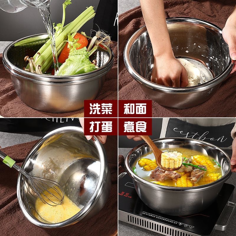 Большая чаша для готовки из нержавеющей стали в европейском стиле с ободком, дуршлаг для риса, банка для слива приправ, чаша для взбивания яиц для домашней кухни, чаша для выпечки и смешивания