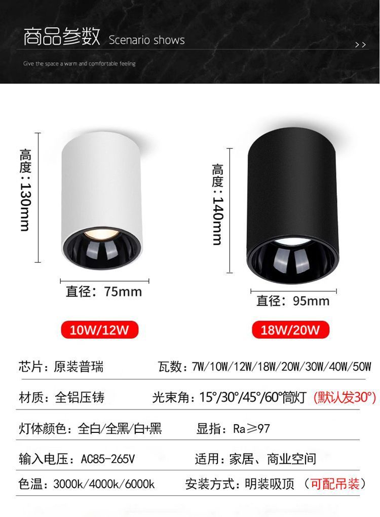 Накладной прожектор COB глубокий встраиваемый антибликовый холм без отверстий для гостиной домашний точечный свет светодиодный спальня без основного света накладной светильник