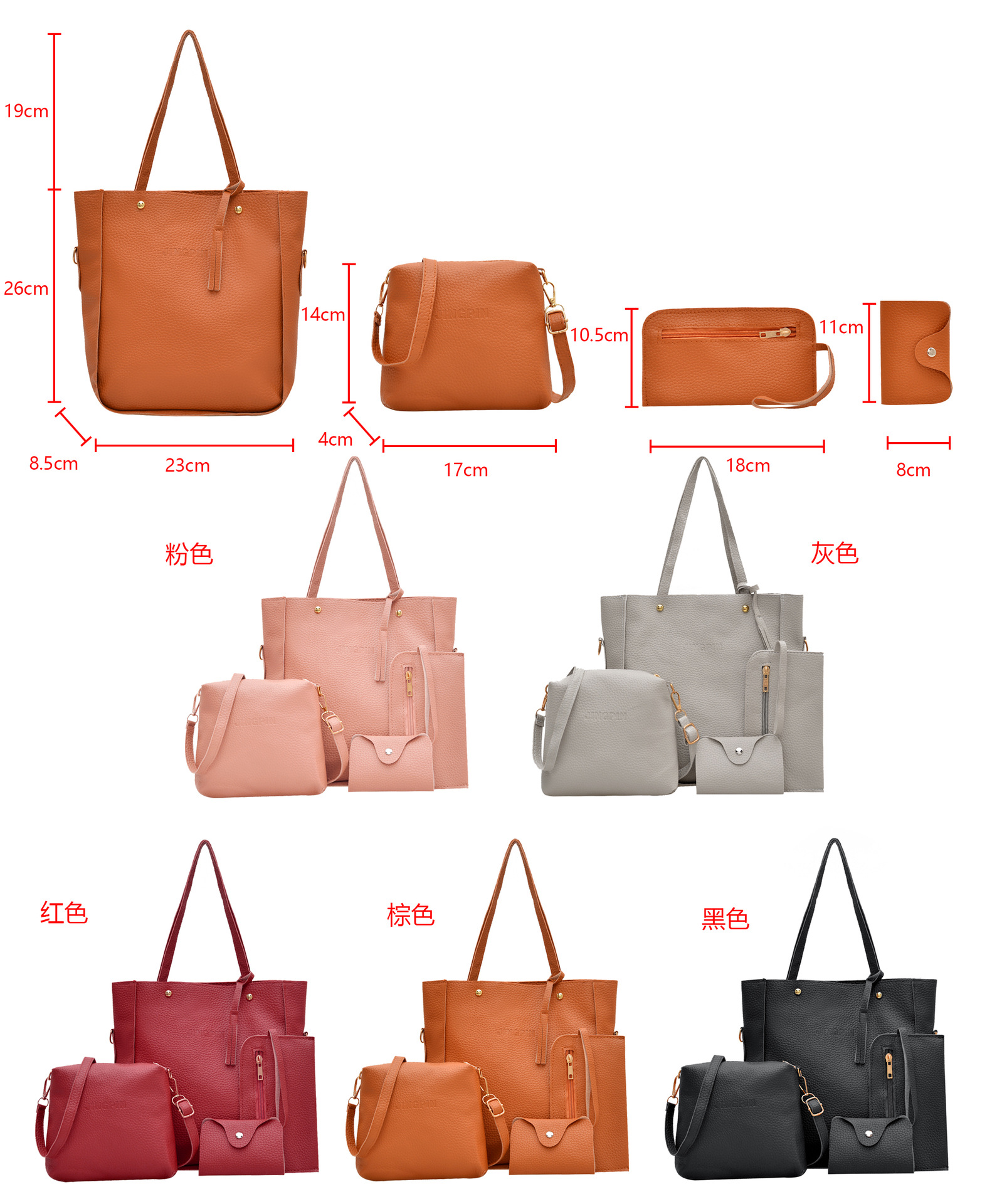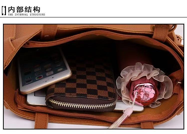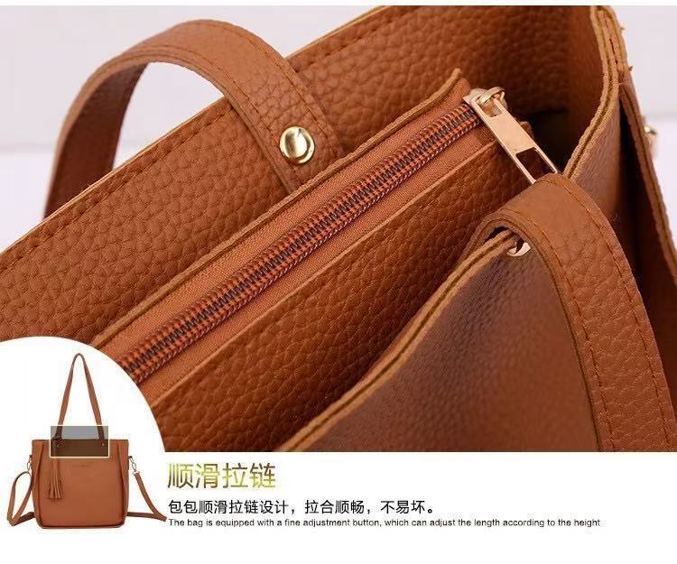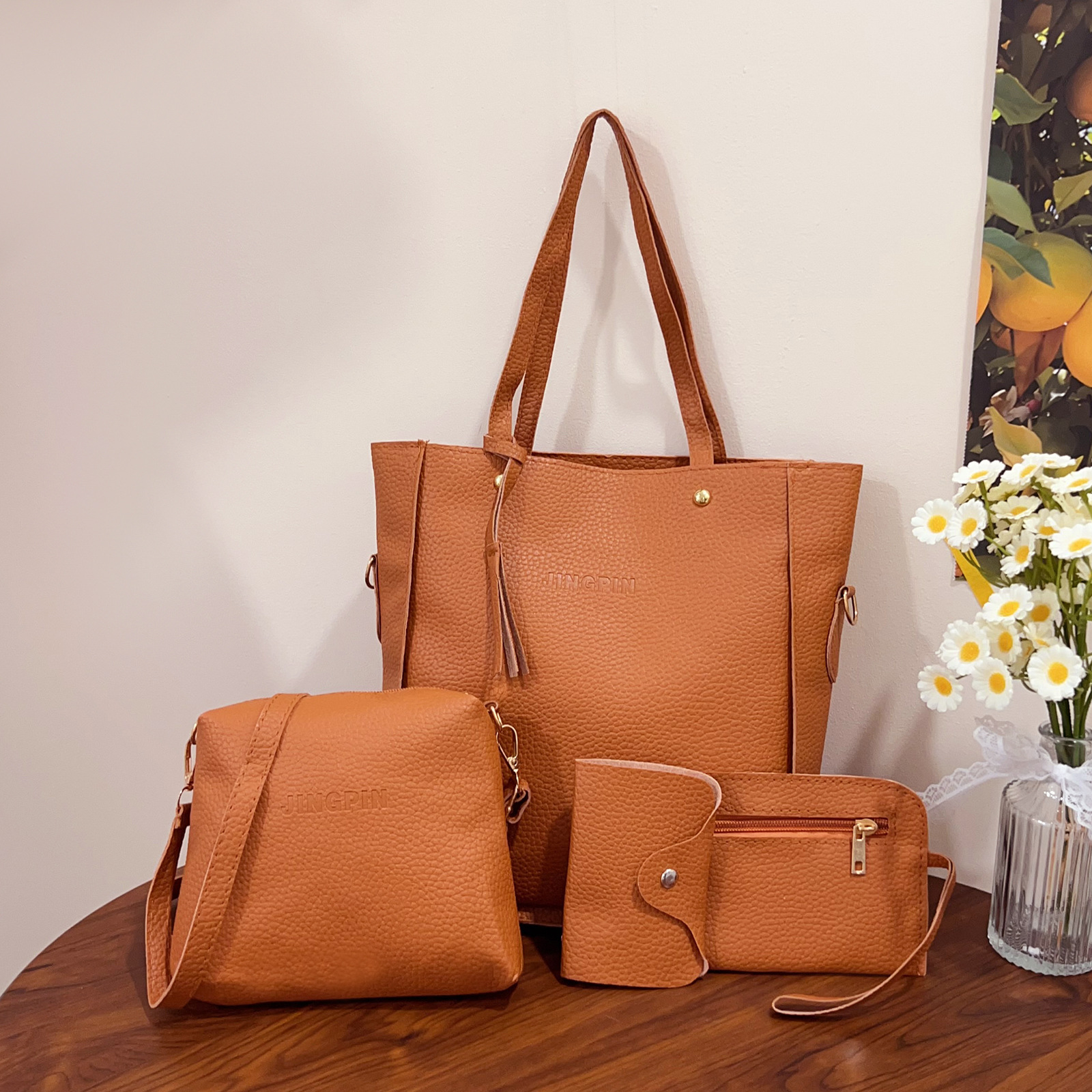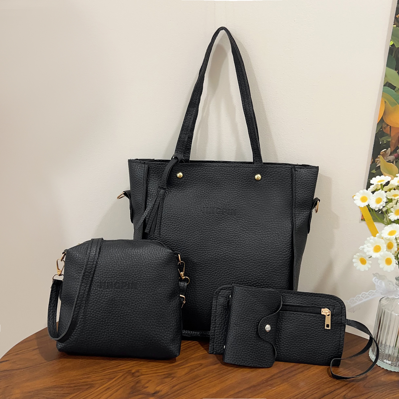Набор женских сумок из четырех предметов с узором личи 2025 новая стильная, простая, универсальная сумка, большая емкость, модная