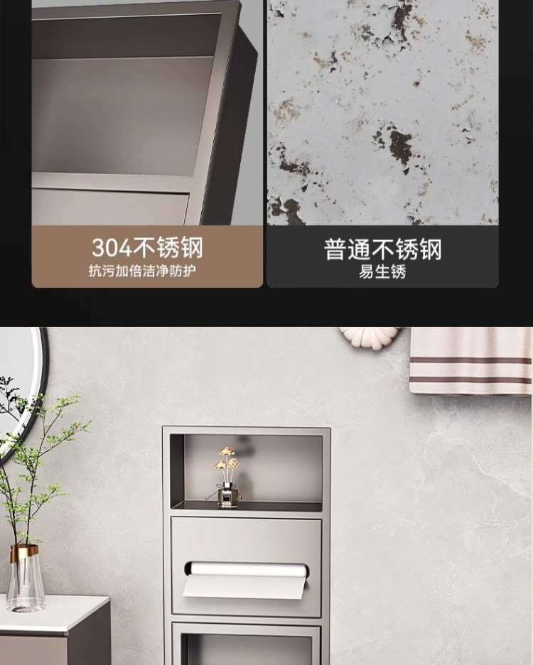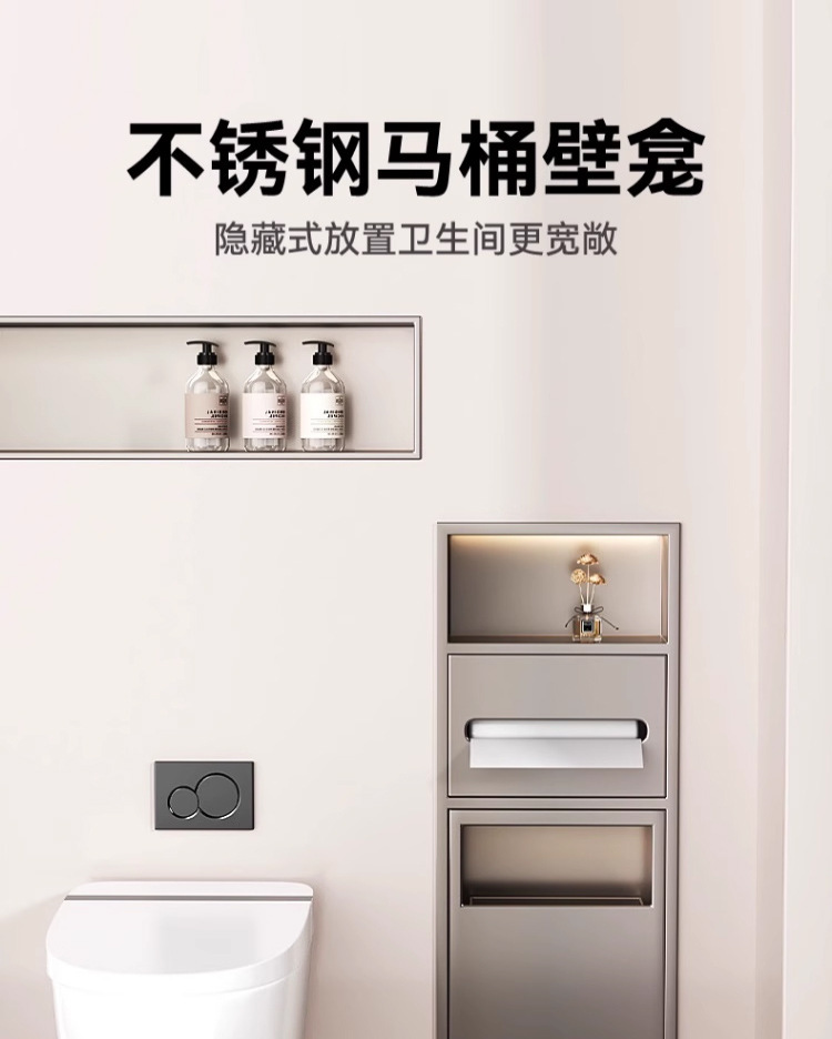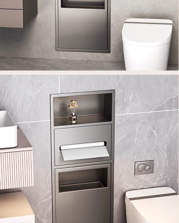 Встраиваемый шкаф для хранения из нержавеющей стали для туалета, коробка для бумаги, мусорное ведро, экономия пространства