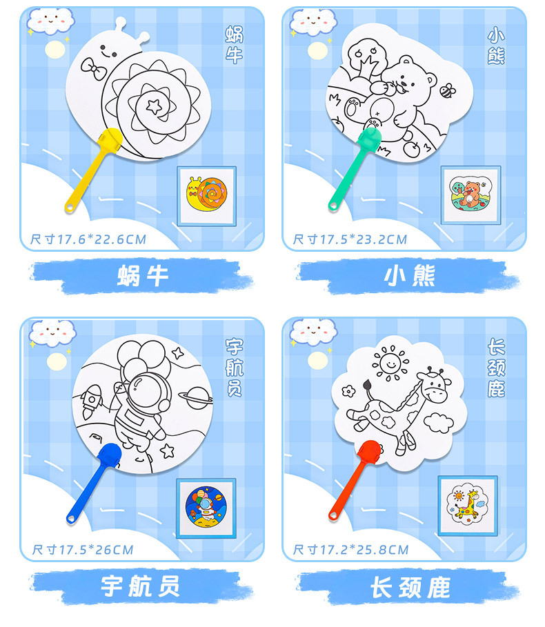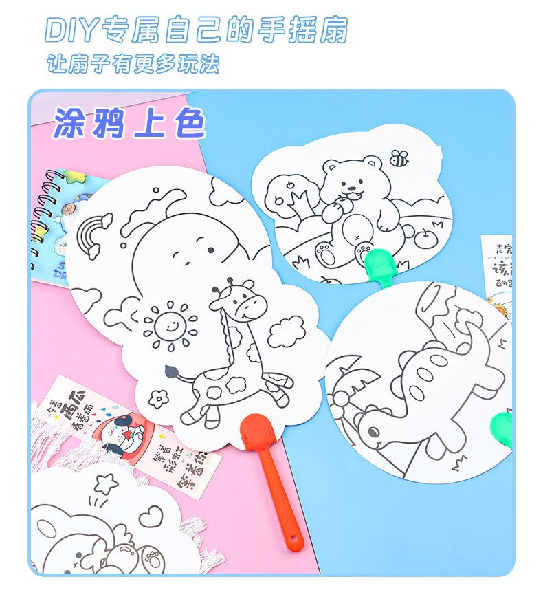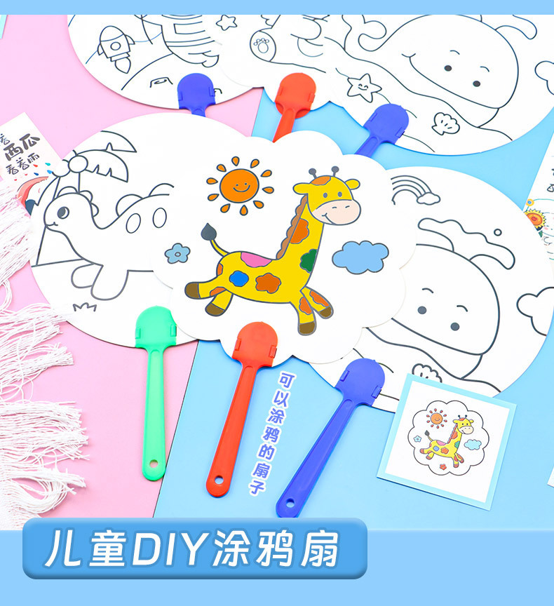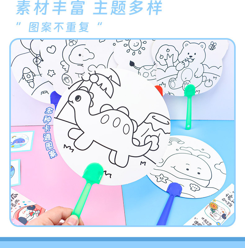 Картонный креативный детский раскраска граффити, ручной раскрашенный бумажный вентилятор с различными узорами, для детского DIY создания вентилятора