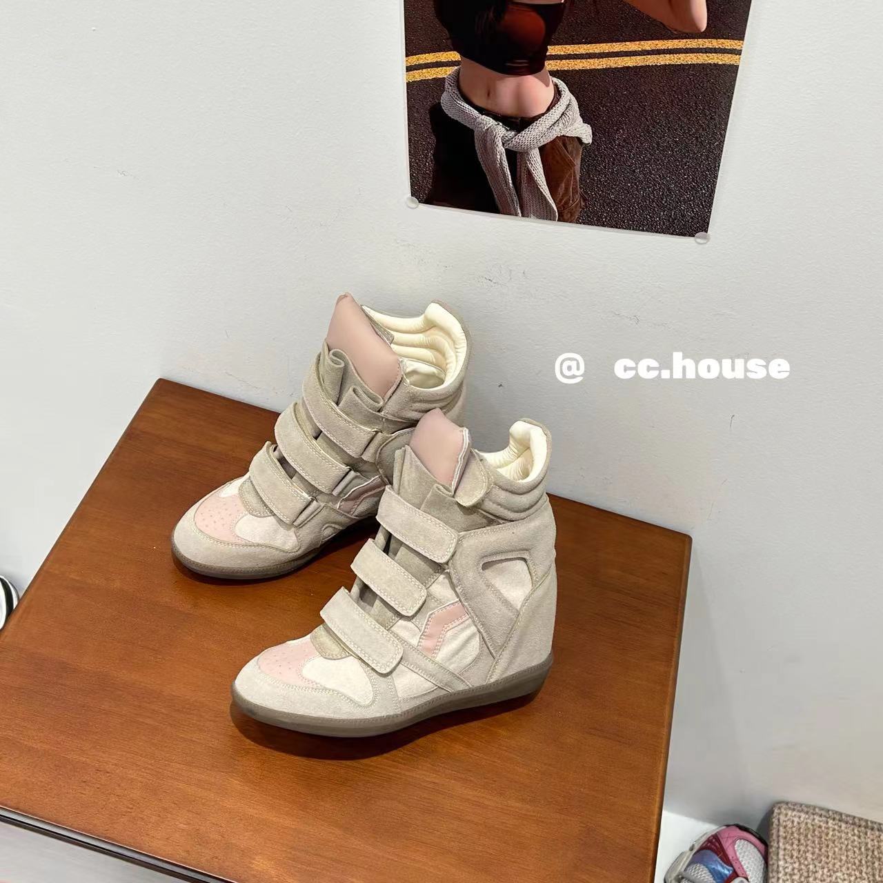 Новые туфли с увеличением высоты для женщин 2025 года, высокие цветные плоские туфли, универсальные кроссовки на липучках