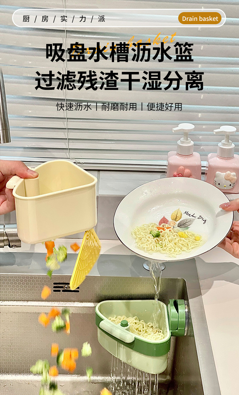 Треугольная корзина для слива с присоской, фильтр для остатков пищи, корзина для мытья фруктов, можно повесить