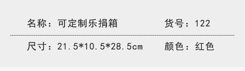 ![]() | Small donation box | 22*10.5*28.5cm | ¥16.0 / ≈ 193 ₽ | 10000 | 6110860010189 | |