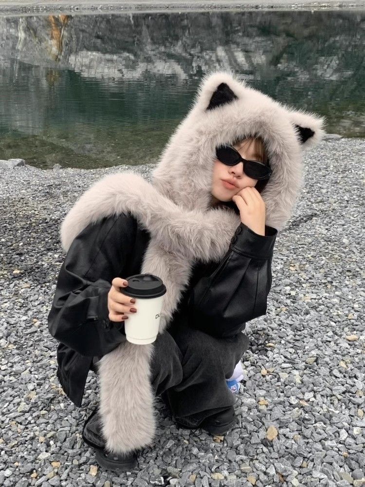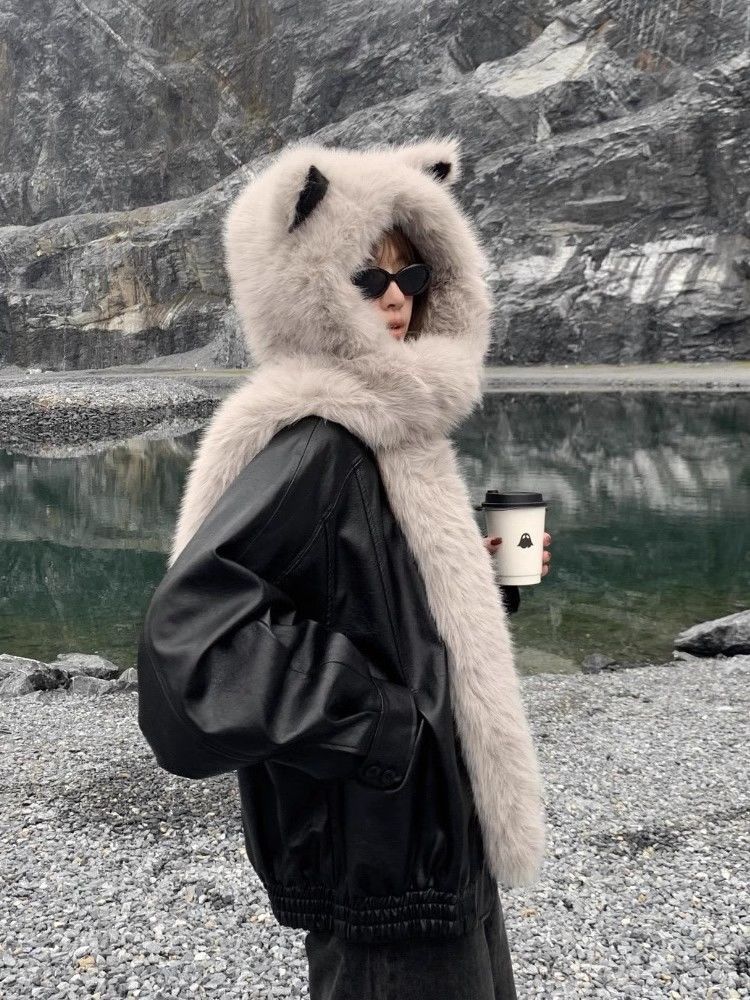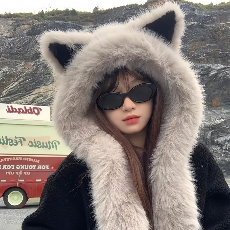 Новая пушистая шапка-скарф с ушами лисы, зимняя, 2025, защищающая уши