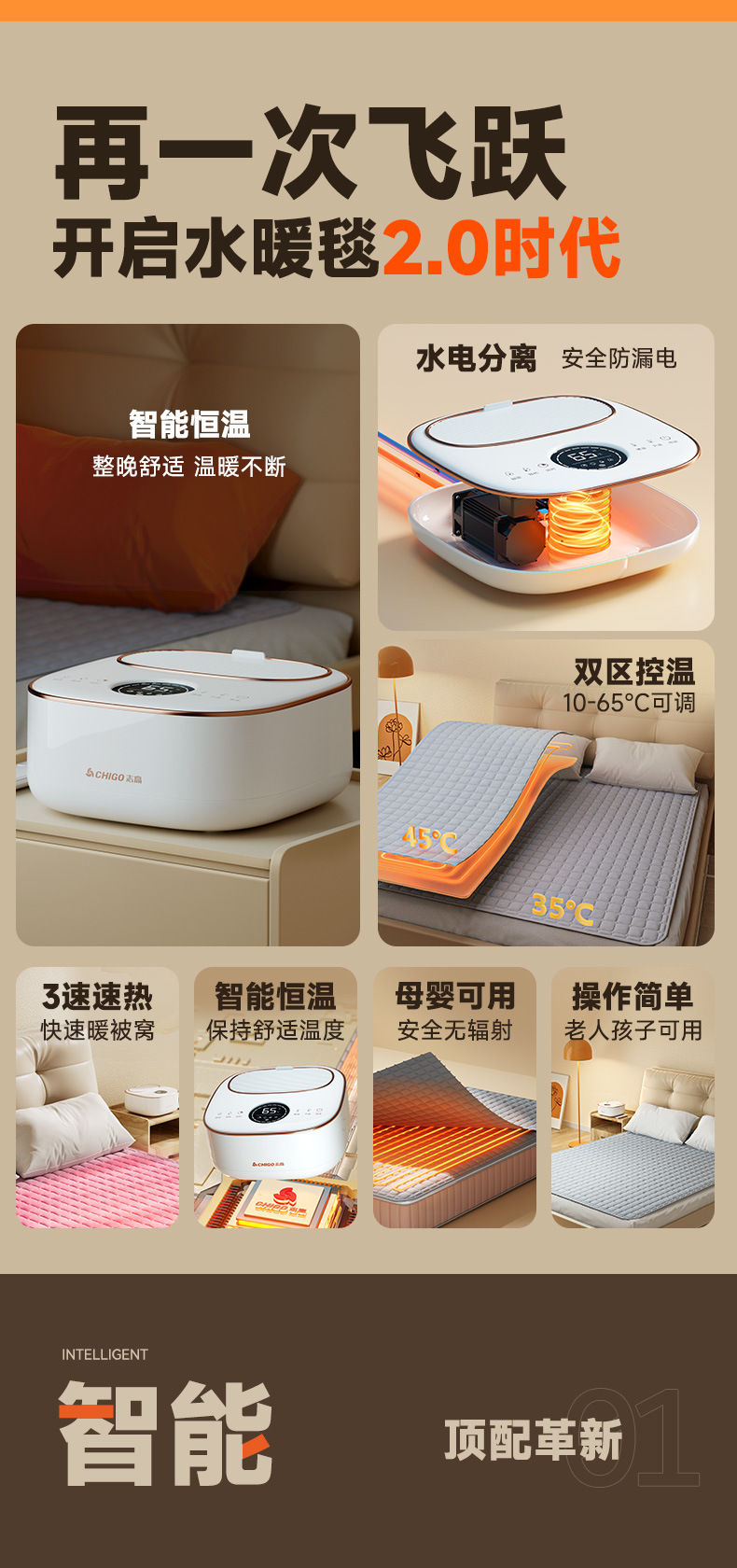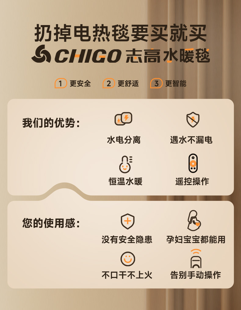 Электрическое одеяло Chigo с подогревом, водяная циркуляция, домашнее электрическое одеяло, двуспальное электрическое матрасное одеяло, водяное одеяло без огня