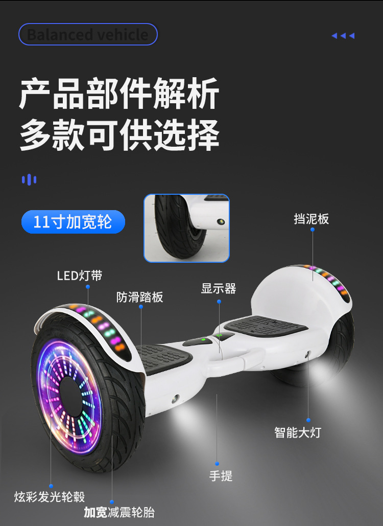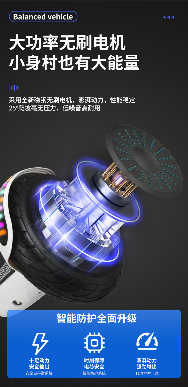 Двухколесный Bluetooth игрушечный балансировочный автомобиль электрический 7 дюймов для детей и взрослых, крутой маркер самобалансирующийся автомобиль