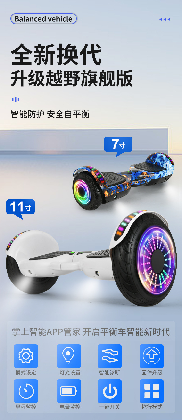![]() | 7inch luminous wheel camouflage blue-with handrails | 10 | ¥319.0 / ≈ 3 843 ₽ | 9971 | 5941727837140 | |