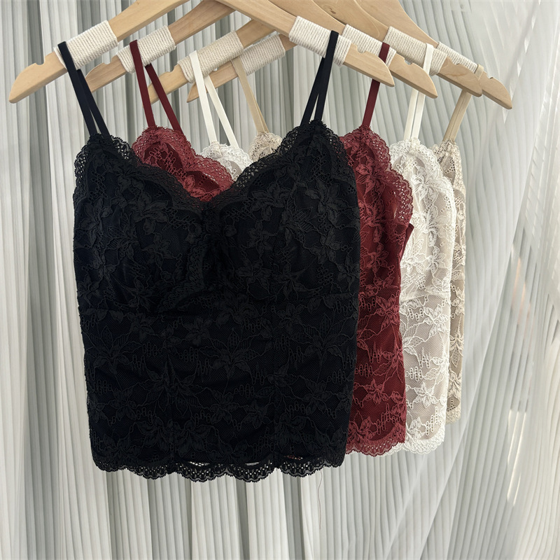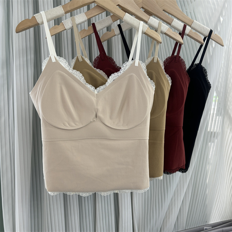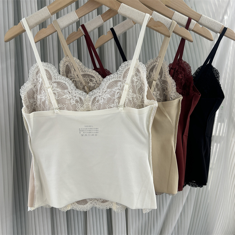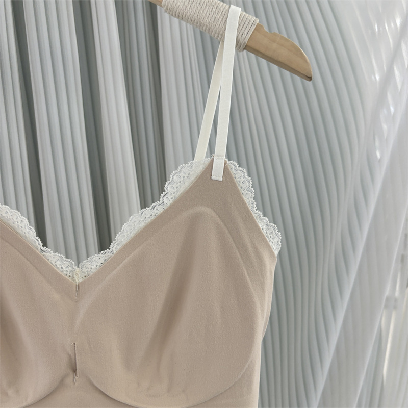 6099 Оригинальная микроворсистая французская майка для женщин с кружевным фиксированным бюстгальтером, собирающим боковую ткань груди