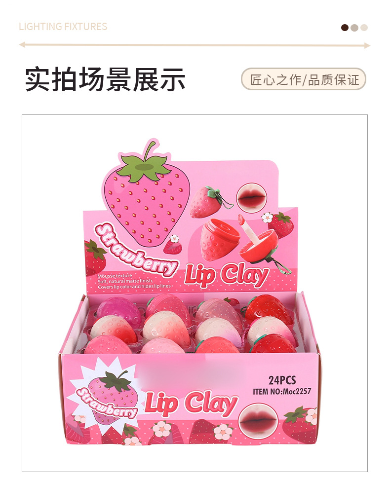 Клубничный бальзам для губ Увлажняющий и осветляющий линии губ База для помады Подвеска Клубничная губная грязь Фруктовый ароматированный блеск для губ