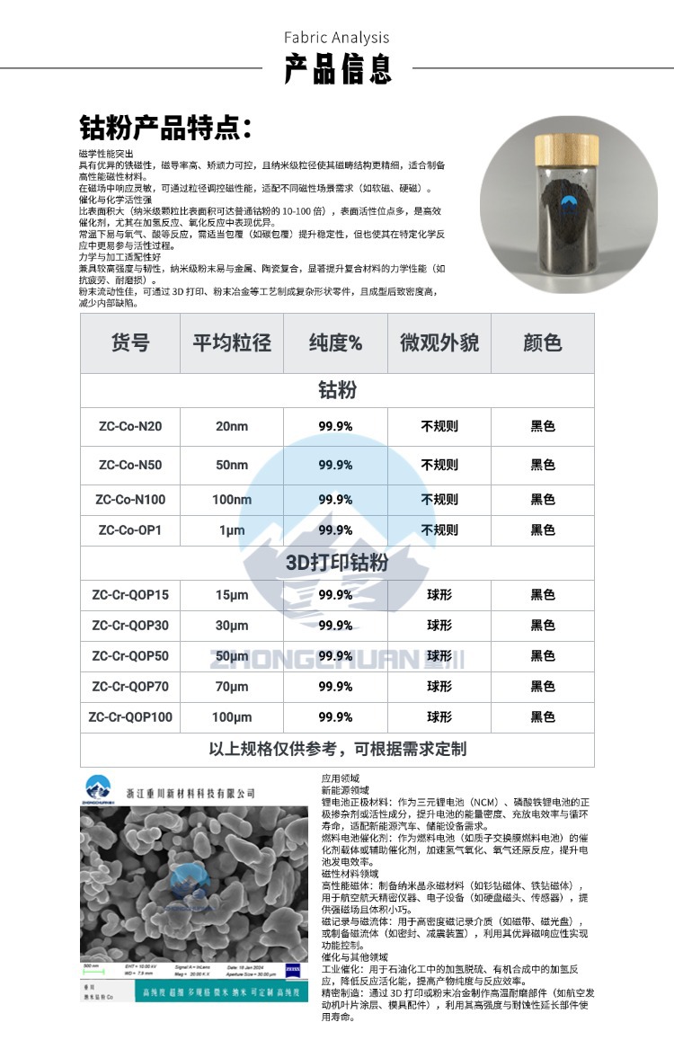 Нано-микронный кобальтовый порошок, высокая чистота, для научных исследований