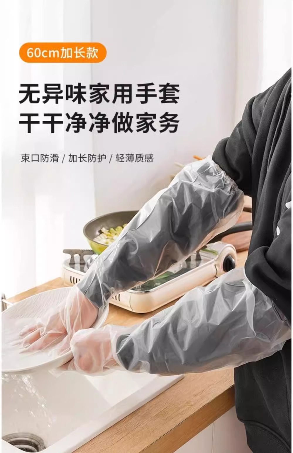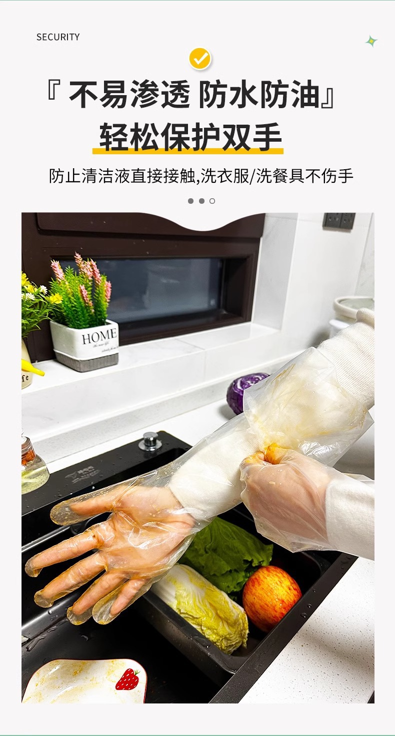 Длинные перчатки для домашних дел, мытья посуды, очистки овощей, утолщенные, водонепроницаемые, одноразовые, пищевого класса